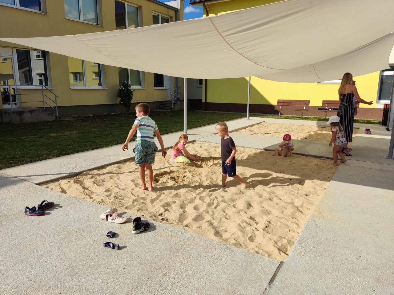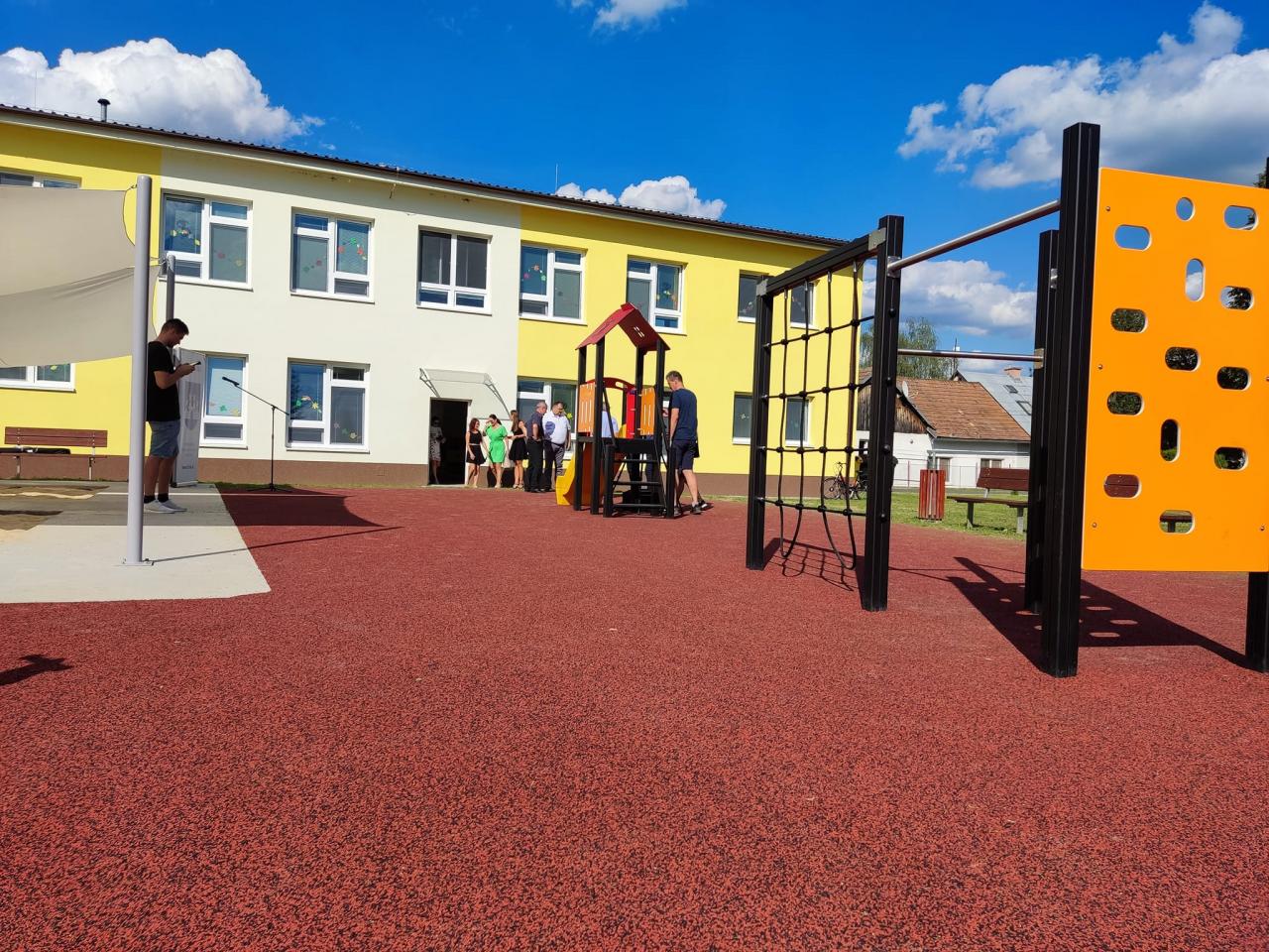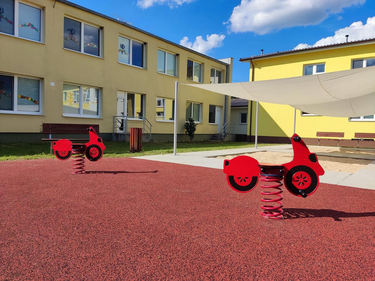 Za pohľad stojí aj vynovený areál, ktorý skrášlila nielen nová príjazdová cesta, ale výsadba zelene a vybudovanie nových dopadových plôch pod hernými prvkami. Pôvodné preliezky doplnili nové a pribudlo aj veľké pieskovisko s tiendlom. Deti si tak budú môcť užiť pobyt v tomto predškolskom zariadení nielen vo vnútri, ale aj vonku.