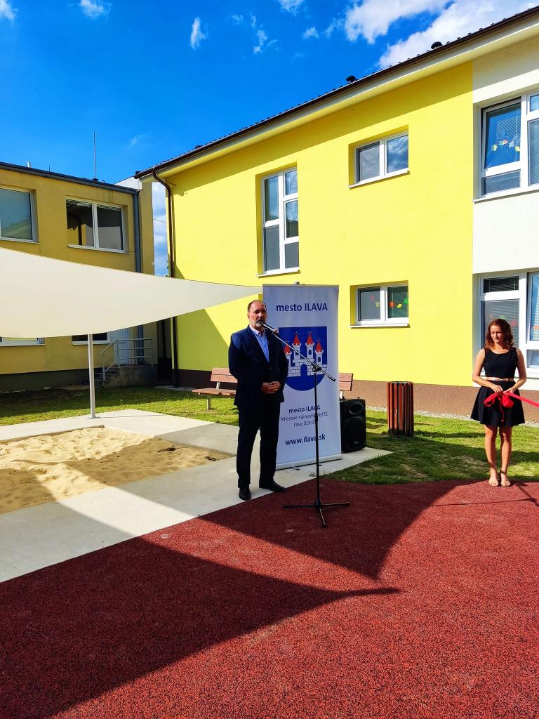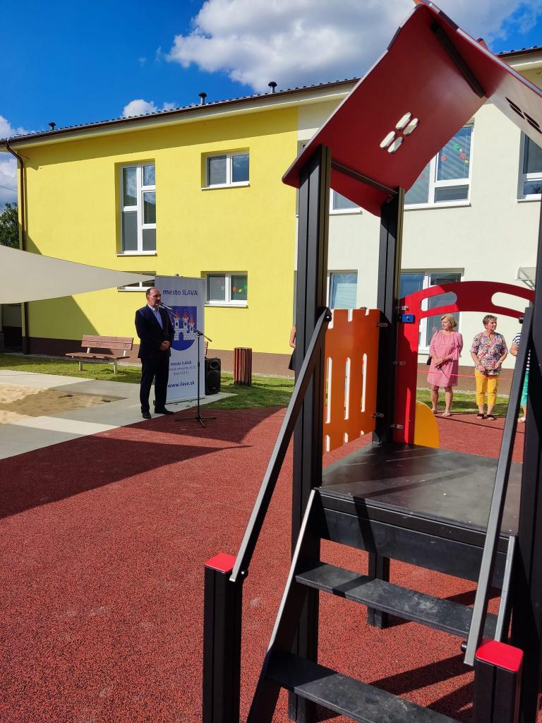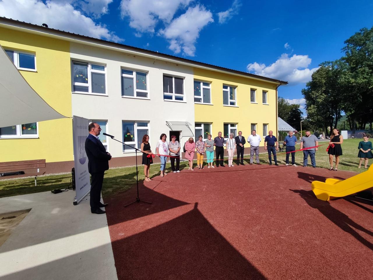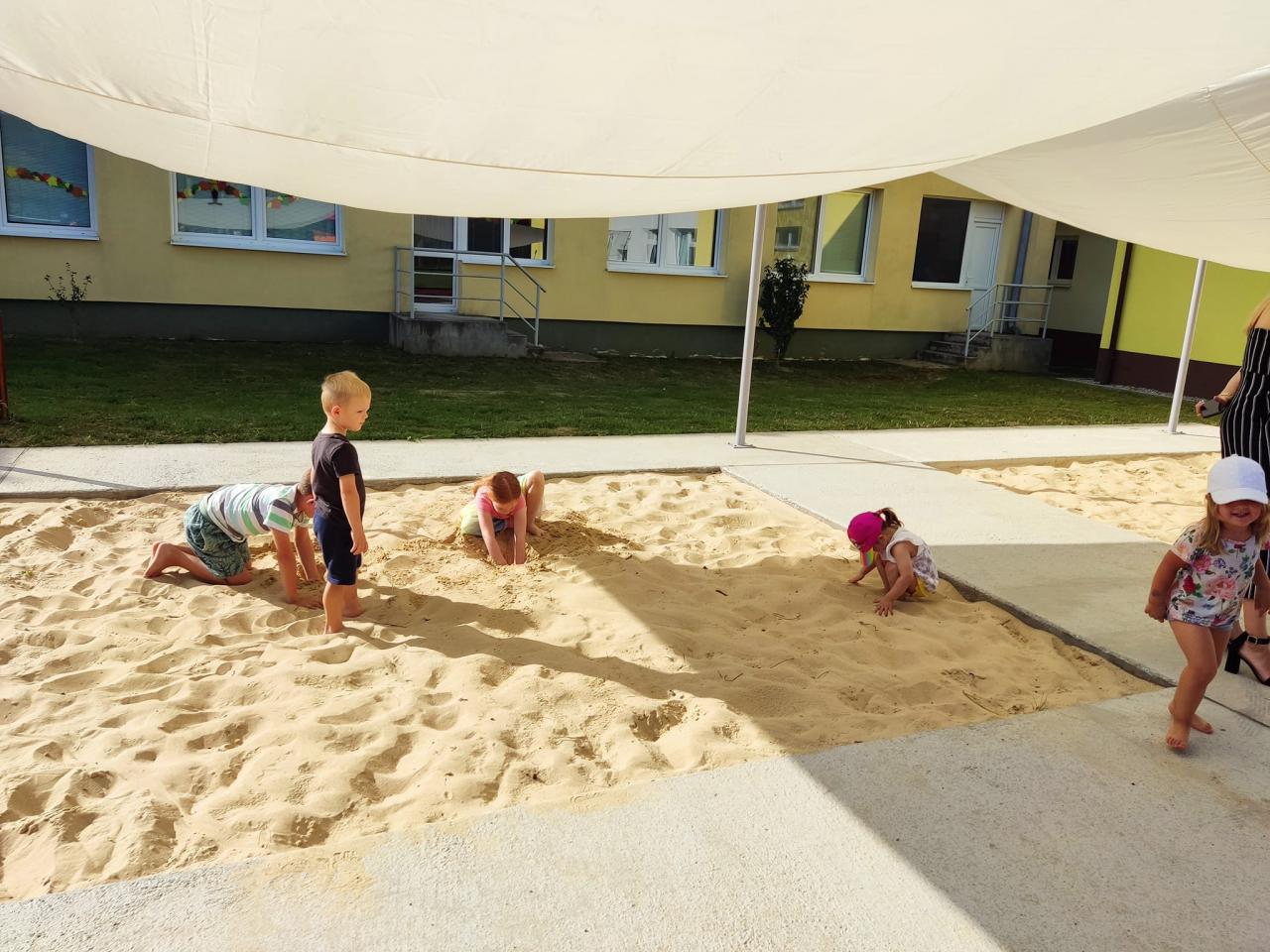 Za pohľad stojí aj vynovený areál, ktorý skrášlila nielen nová príjazdová cesta, ale výsadba zelene a vybudovanie nových dopadových plôch pod hernými prvkami. Pôvodné preliezky doplnili nové a pribudlo aj veľké pieskovisko s tiendlom. Deti si tak budú môcť užiť pobyt v tomto predškolskom zariadení nielen vo vnútri, ale aj vonku.