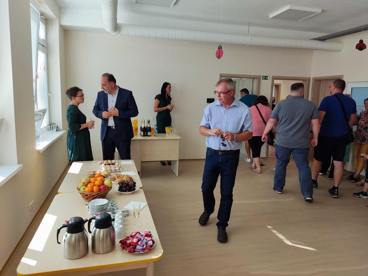 K samotnej stavbe tak pribudla oprava spomínanej kuchyne a jej nové zariadenie, ale aj kompletná výmena sietí, kanalizácie a kúrenia v jestvujúcej budove. V starých tiredach sa vymenili radiátory a omaľovali sa aj pôvodné chodby. Práve kuchyňa je miestom spojnice medzi starou a novou budovou. V tej novej sme mali možnosť postupne vidieť, ako rastie, naberá reálne kontúry až napokon počas slávnostného otvorenia, rodičia, poslanci a široká verejnosť mohla nové priestory vidieť už ako reálne dve veľké triedy (herná časť a spálňa) so sociálnymi zariadeniami, výdajňou jedál a šatňou.