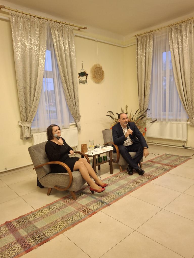 Moderovania debaty sa ujal primátor mesta Viktor Wiedermann. Nielen Ilavčania vedia, že pred trinástimi rokmi otvoril v centre obchod s knihami a umeleckými, ručne robenými predmetmi, ktorému sa teraz venuje jeho manželka. Na otázku o historickom pozadí príbehu autorka menovala nielen rodinné artefakty, listiny, fotografie, ale aj kroniku dediny Poluvsie (dejisko knihy), spoluprácu s historikom - overovala hlavne údaje o vojne na Balkáne.