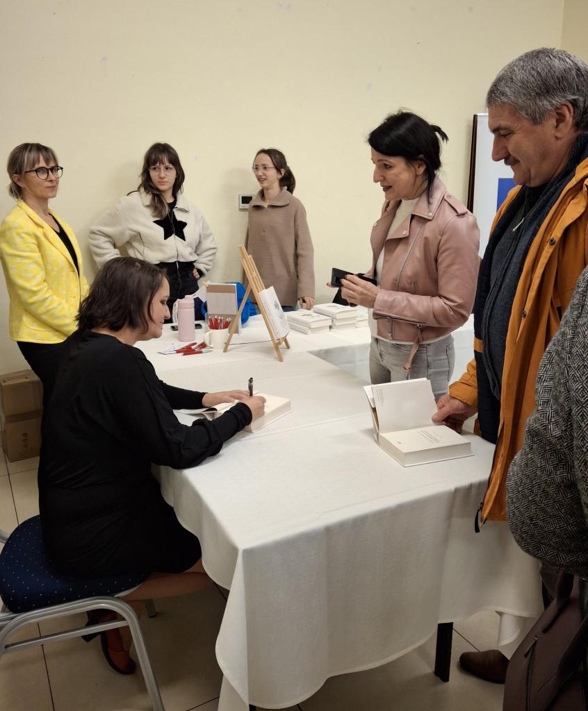 Zazneli viaceré otázky z publika i pochvala za vklad etnografky, pretože autorka v príbehu pomenúva časti ľudového odevu v miestnom nárečí (s vysvetlivkami). Záver besedy patril autogramiáde, no debatovalo sa ešte aj po nej a viacerí sa na autorku obracali práve v súvislosti s odievaním, priniesli jej ukázať aj vlastnú tvorbu.