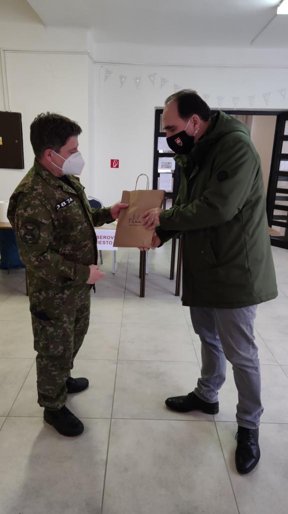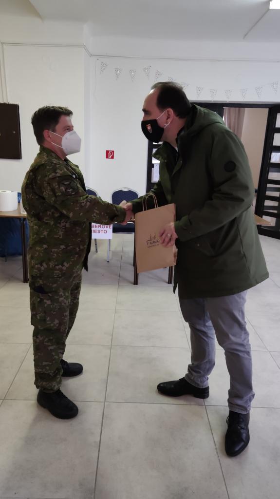 Na fotografiách primátor ďakuje za dobre odvedenú prácu a za vzájomnú spoluprácu príslušníkom Ozbrojených síl SR, ktorí boli vyčlenení pre päť odberových miestností v Ilave. Na pamiatku im venoval publikáciu o meste Ilava.
