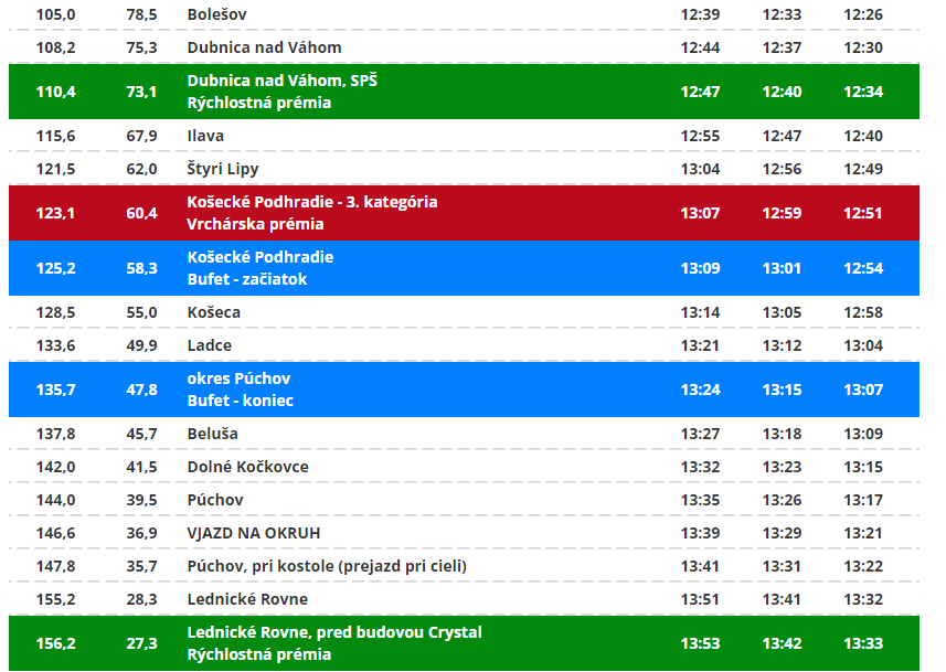 Záverečná etapa štartuje pri zámku v Hlohovci a po 183,5 kilometroch s troma horskými a dvoma rýchlostnými prémiami vyvrcholí v Púchove. Na ceste cez Sokolovce, Piešťany, Krakovany, Čachtice, Hornú Súču a sedlo Dúbrava, Skalku nad Váhom, Dubnicu, Ilavu, Košecké Podhradie, Belušu, Púchov, Lednické Rovne a Lednicu privedie cyklistov naspäť do Púchova, kde sa rozdajú celkové výsledky a dresy jednotlivých súťaží.