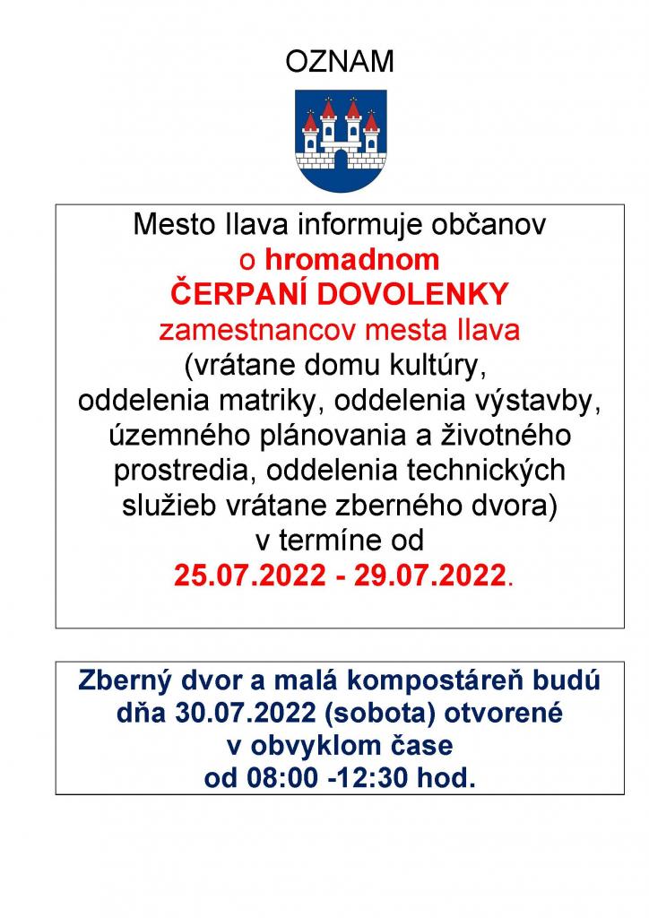 Obedňajšia prestávka je od 11:00 do 12:00 hod.