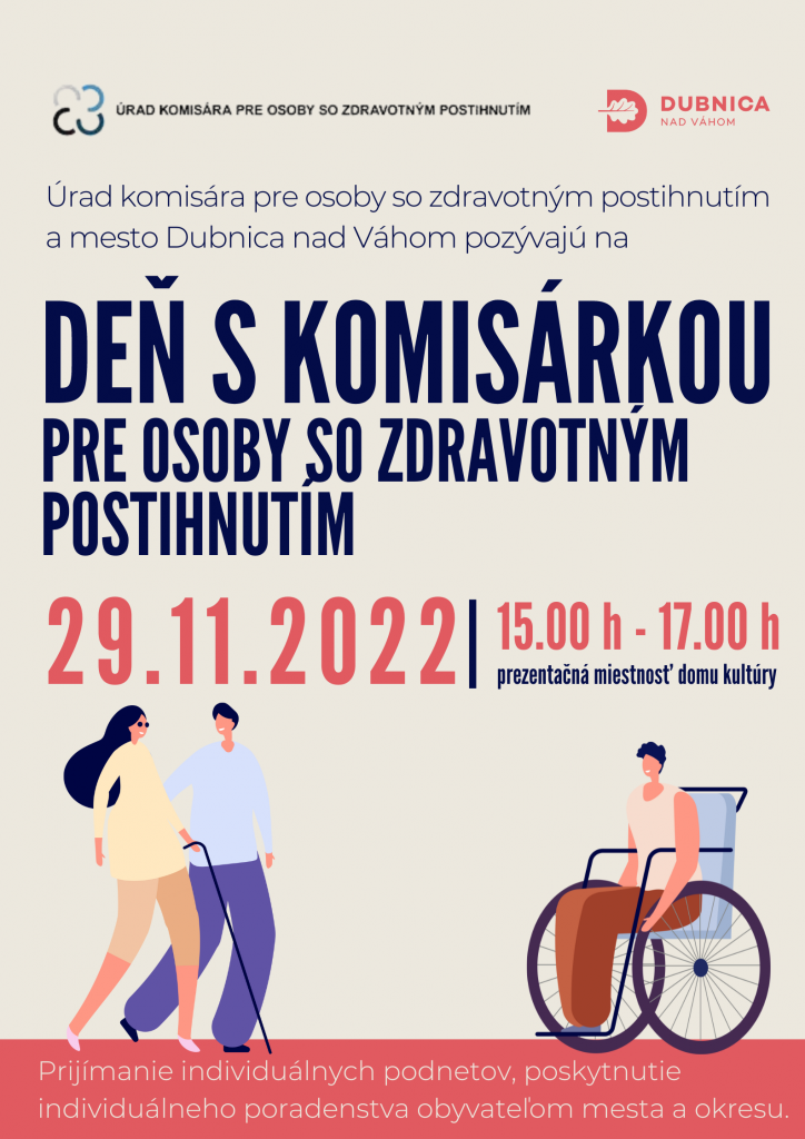 Vo utorok 29. novembra 2022 navštívi Dubnicu nad Váhom v rámci návštev slovenských miest komisárka pre osoby so zdravotným postihnutím Zuzana Stavrovská.
