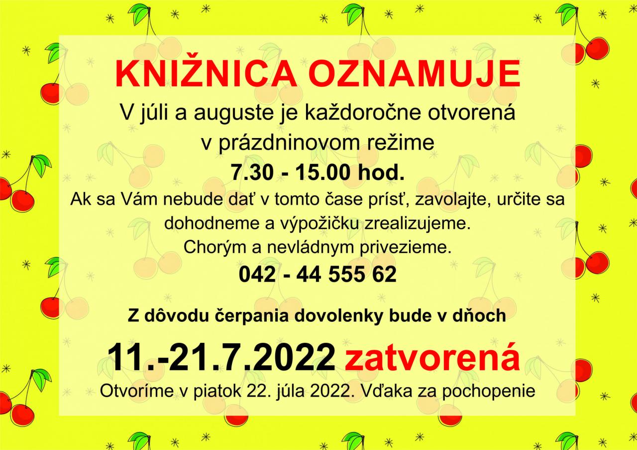 Obedňajšia prestávka je od 11:00 do 12:00 hod.