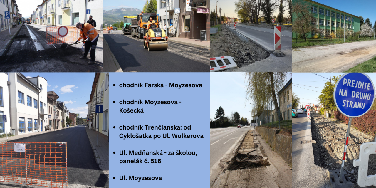 Radnica má v pláne v takýchto etapách a balíkoch ciest a chodníkov pokračovať aj naďalej. ,,Nadviažeme aj na to, čo už sme rozbehli. Opravili sme 2 km ciest, 2,8 km chodníkov a 1950 m2 výtlkov v štyroch etapách. Pripravenú máme už aj piatu etapu, na jar by sme tak chceli opraviť Zámockú a Záhumenskú ulicu a chodník na Pivovarskej ulici," uviedol primátor mesta Viktor Wiedermann.