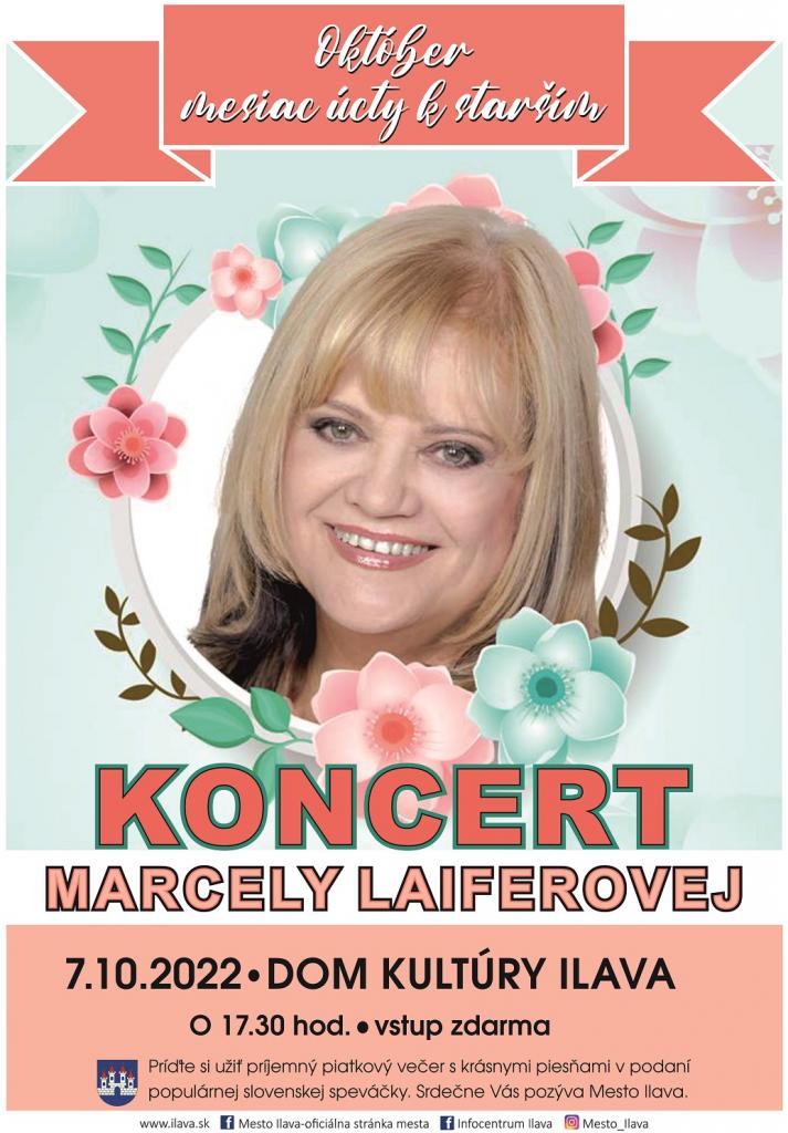 Opäť je tu jeseň a mesiac október, ktorý v plnej krásečarovných farieb zaujal svoje miesto. Október je mesiac, ktorý je oslavou jesene života a pripomienkou úcty k všetkým staším ľuďom. Mesto Ilava pri príležitosti Mesiaca úcty k starším pozýva všetky mamy, oteckov, staré mamy, starých otcov i príbuzných, známych na koncert nestarnúcej speváčky hitov Marcely Laiferovej.