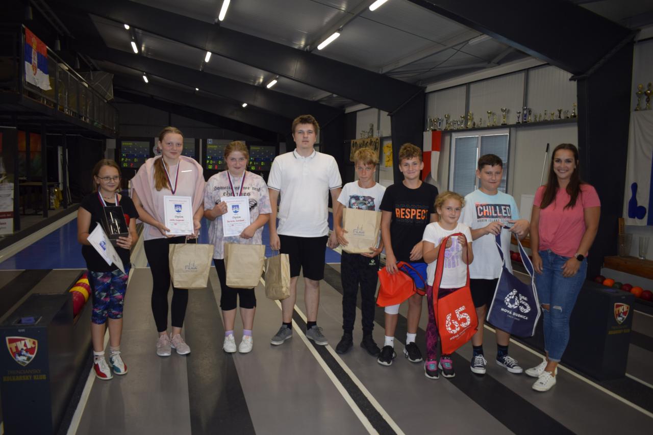 Kategória žiaci U15 – vyhodnotenie : 1. miesto Eliška Kebísková ( v strede s pohárom) 2. miesto Janka Vulganová (vľavo), 3. miesto Ema Hatnančíková (vpravo)