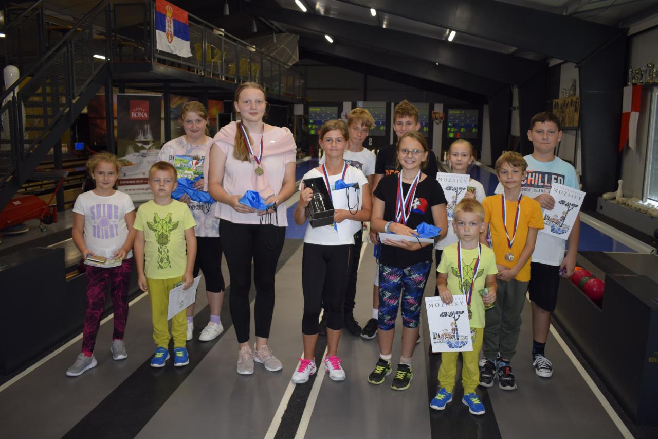 Kategória žiaci U12 – vyhodnotenie zľava doprava : 1. miesto Ema Hatnančíková, 2. miesto Rastislav Filip ml., 3. miesto Matúš Hatnančík