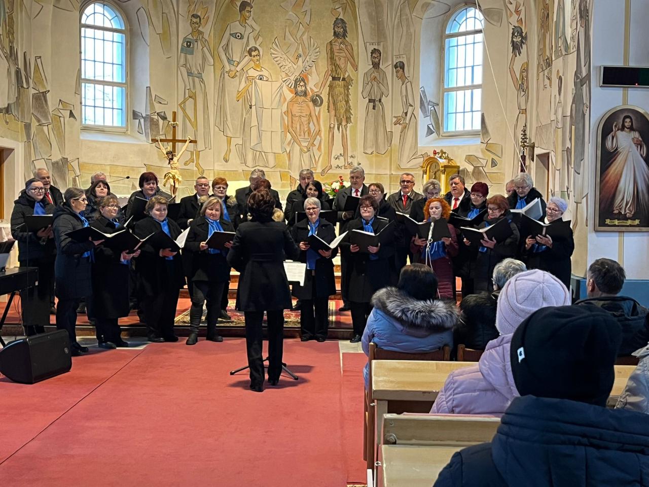 Privítal nás miestny pán farár a odštartoval nádherný kultúrny zážitok. Na náš zbor sa prišli pozrieť aj miestni obyvatelia, ktorí dotvorili skvelú atmosféru. Po vystúpení poďakovali zboru a našu expedíciu pozvali na malé občerstvenie. V miestnej sokolovni sme sa zvítali aj s manželkou starostu. Výbornú večeru doplnil zbor o svoje piesne. Na záver dostal každý člen malé poďakovanie a náš zbor poďakoval zasa nádhernou piesňou.