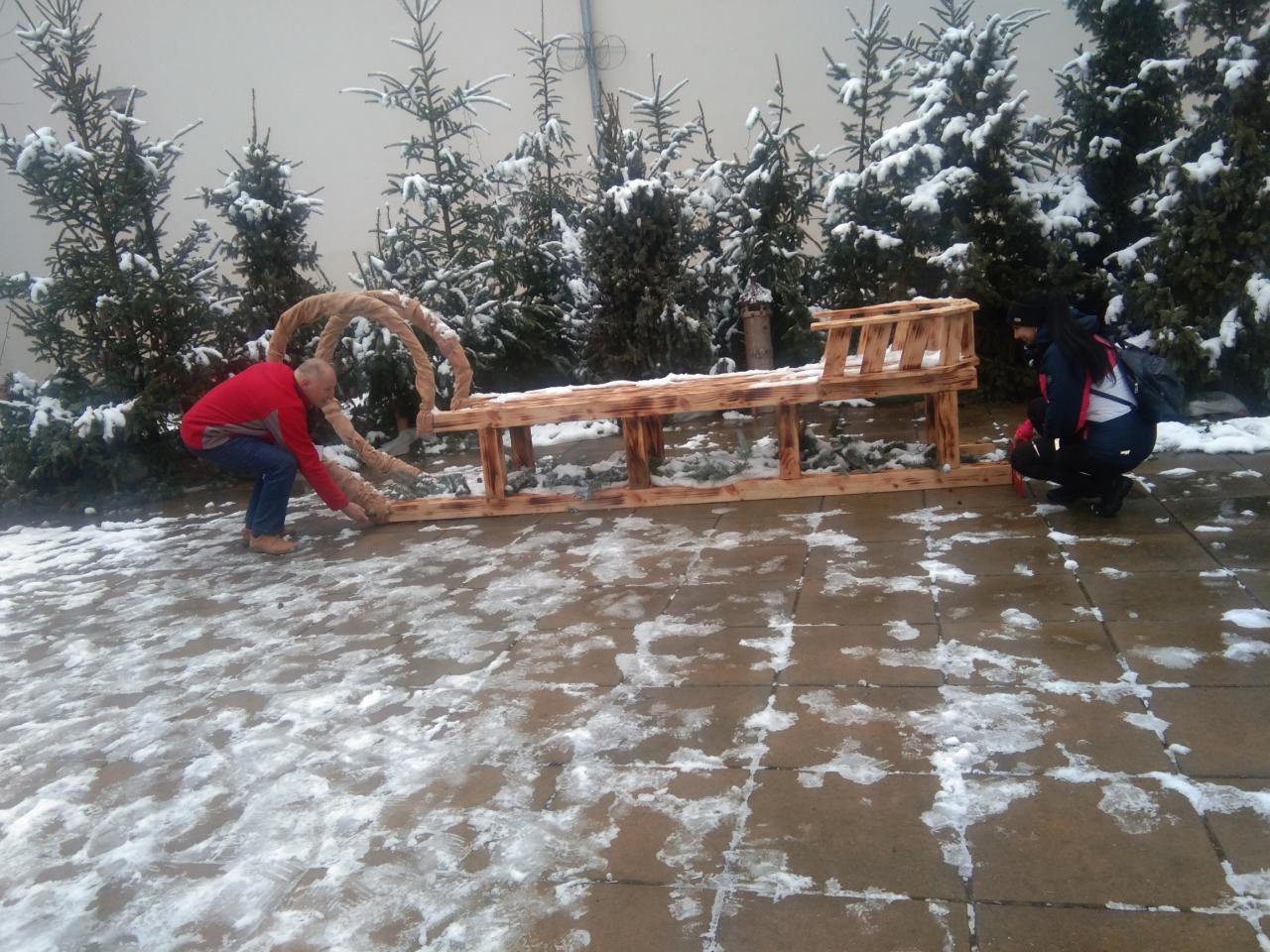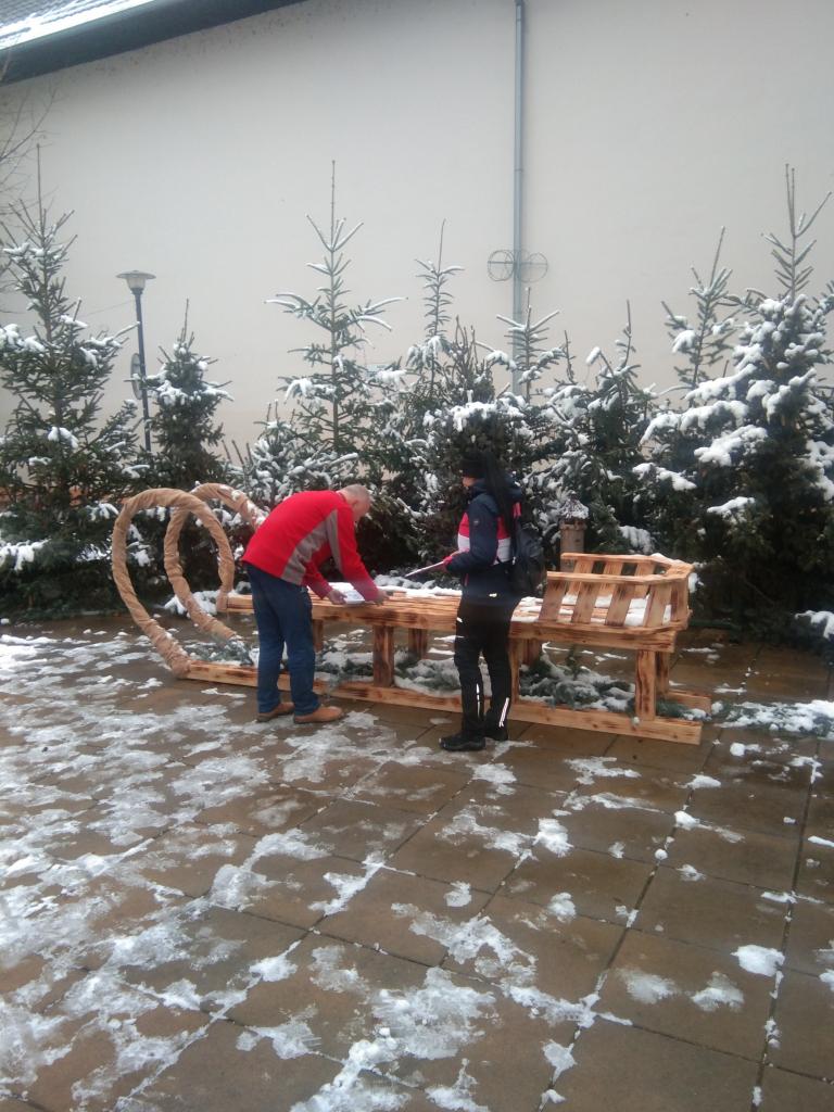 Z jedného parku sa komisár presunul do druhého, kde sa zasadené do krásnej výzdoby vynímajú obrovské drevené sane. O ich zhotovenie sa postarali pracovníci Mesta Ilava, oddelenia TSM. Po premeraní bol urobený zápis rekordu s ich dĺžkou 395 centimetrov.