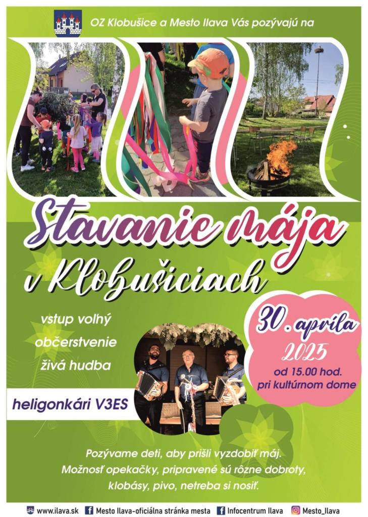 Stavanie mája nevynechajú ani ďalšie dve mestské časti Ilavy. V Klobušiciach bude popri stavaní veselo, deti môžu prísť už od tretej hodiny popoludní ozdobiť máj. Nebude chýbať hudba občerstvenie, či opekačka.