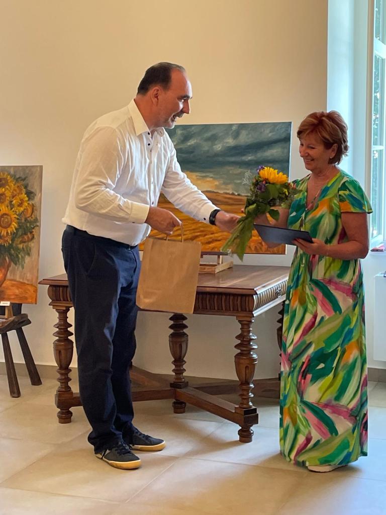 Vernisáže sa zúčastnil aj primátor mesta Ilava Viktor Wiedermann, ktorý domácej výtvarníčke zablahoželal k životnému jubileu. Ku gratulácii sa pridávame a prajeme veľa zdravia, šťastia a spokojnosti.