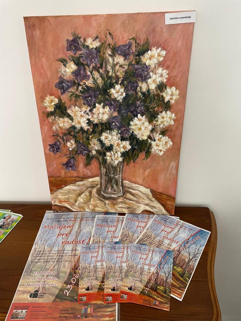 Božku Slávikovú mnohí poznáte ako dlhoročnú pani učiteľku a samozrejme aj ako talentovanú výtvarníčku. Jej diela ste si mohli niekoľkokrát pozrieť na výstavách v dome kultúry. Tentoraz jej obrazy môžete prísť obdivovať do Kaštieľa v Ladcoch, kde spolu s kurátorkou Alenkou Teicherovou uviedla v nedeľu 23. júna na vernisáži výstavu svojich umeleckých diel pod názvom “MAĽUJEM PRE RADOSŤ”. Potrvá do konca júla a v jej mene vás na ňu srdečne pozývame.