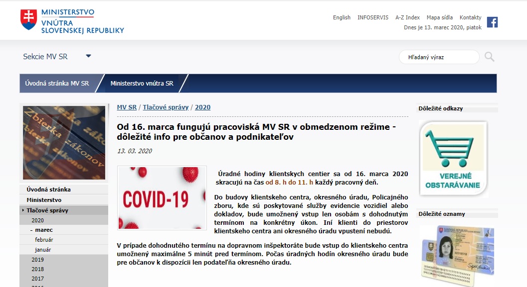- V prípade nevyhnutnosti osobnej konzultácie alebo úkonu je možné dohodnúť si presný čas s konkrétnym úradníkom prostredníctvom zverejnených kontaktov na www.minv.sk