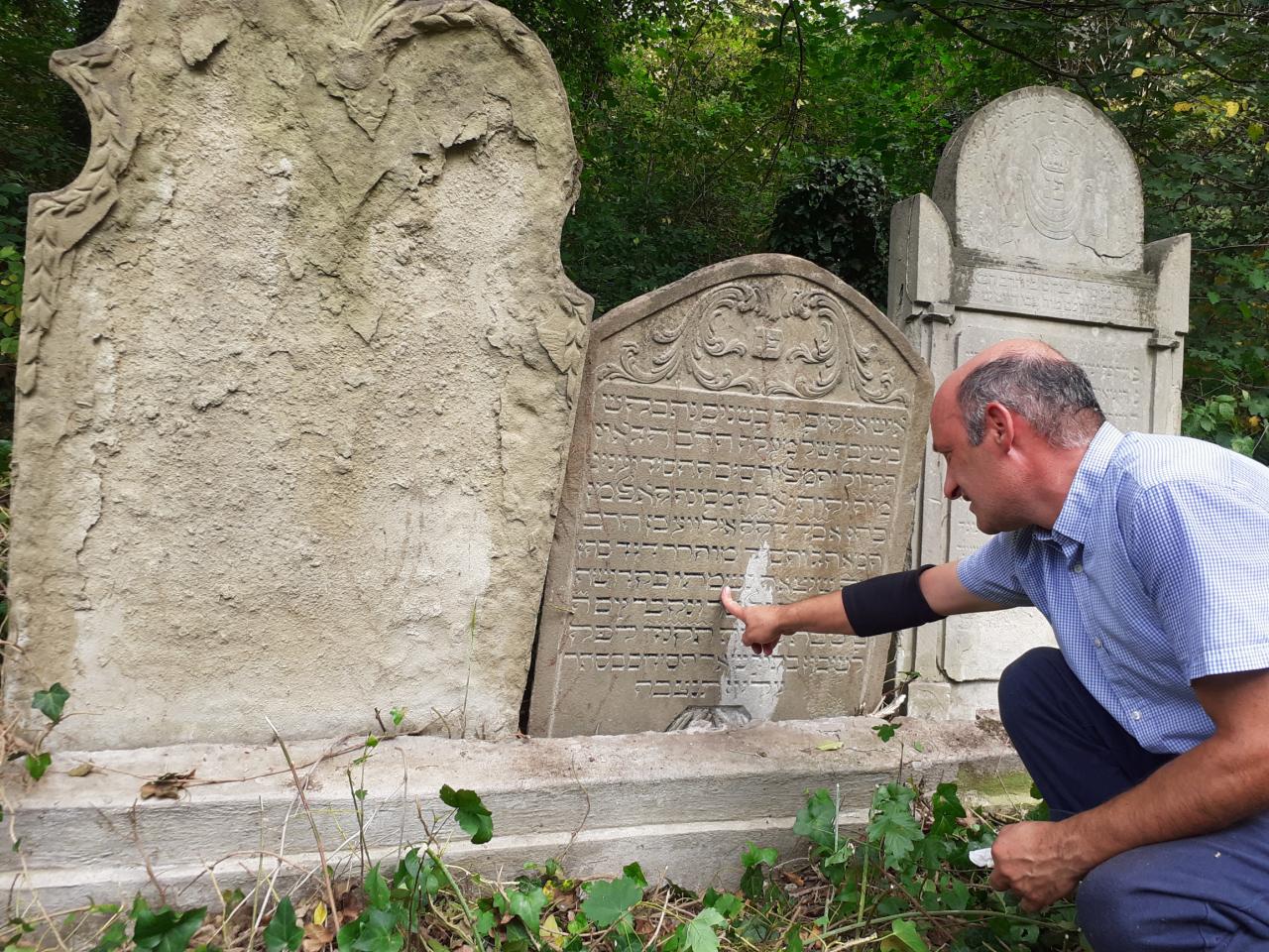 Pod hustým porastom sme objavili schody vedúce do hornej časti, kde sú hroby známeho rabína Davida Lewina (1838 -1908) a jeho príbuzných. Tieto sme tiež museli „vydolovať“ spod brečtanu a vysokých kríkov. Ďalšiu skupinu náhrobkov významných rabínov sa podarilo nájsť a očistiť v spodnej (pravdepodobne najstaršej) časti cintorína. Ide o hroby Jakutieha Koppelmanna (zomrel v roku 1793), Pinchasa Deutscha (zomrel 1866), ďalší je už natoľko poznačený zubom času, že sa údaje nedajú prečítať. To je problém hlavne pokiaľ sú pomníky zhotovené z pieskovca.