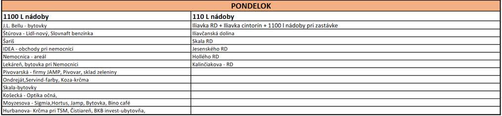 Presun zberu ZKO sa týka nasledovných lokalít: