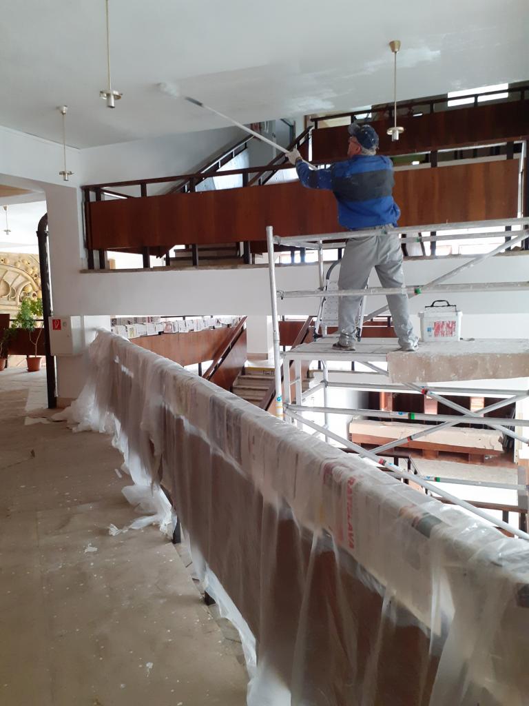 „Aj ilavský dom kultúry, tak ako všetky ostatné, zostal pre koronavírus od polovice marca zatvorený. Zamestnanci oddelenia kultúry však nezostali doma. Najskôr sa vestibul domu kultúry zmenil na provizórnu krajčírsku dielňu a všetci sme šili rúška. V máji sme sa pustili do vymaľovania vstupných priestorov a knižnice,“ povedala nám referentka oddelenia kultúry Oľga Tomášová. Ako ďalej prezradila, keďže samospráva v aktuálnom období musí šetriť finančné prostriedky, do maľovania sa pustili svojpomocne s minimálnymi nákladmi iba na materiál. „Nie je to jednoduchá práca, pretože po tridsiatich rokoch sa maľuje aj strop vo vstupnej hale. V niekoľkometrovej výške a z lešenia to robia Ľubomír Klobučník a Peter Bartek. So štetcami v ruke nájdete aj Anku Riecku či upratovačky Janku Januškovú a Renatu Matejkovú,“ povedala O. Tomášová.