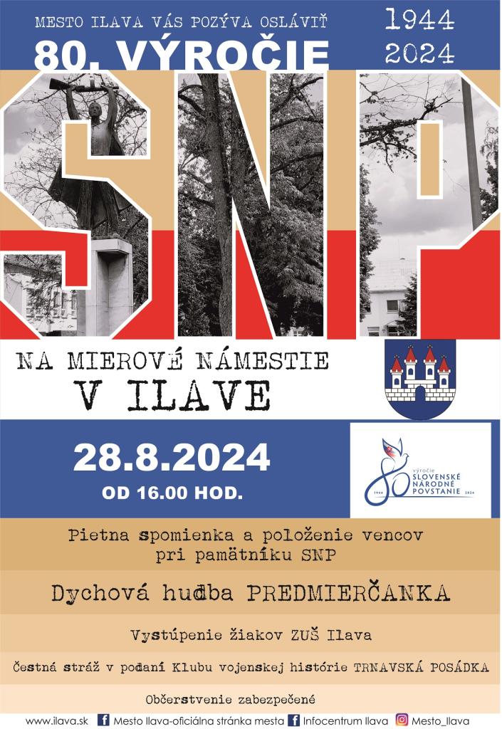 Pri tejto príležitosti Vás pozývame o 16.00 hod. na sprievodný program, v ktorom vystúpia žiaci Základnej umeleckej školy v Ilave a Dychová hudba Predmierčanka. Členovia Klubu vojenskej histórie TRNAVSKÁ POSÁDKA budú počas pietnej spomienky držať čestnú stráž. Následne sa spoločne pokloníme a položíme vence k Pomníku SNP.