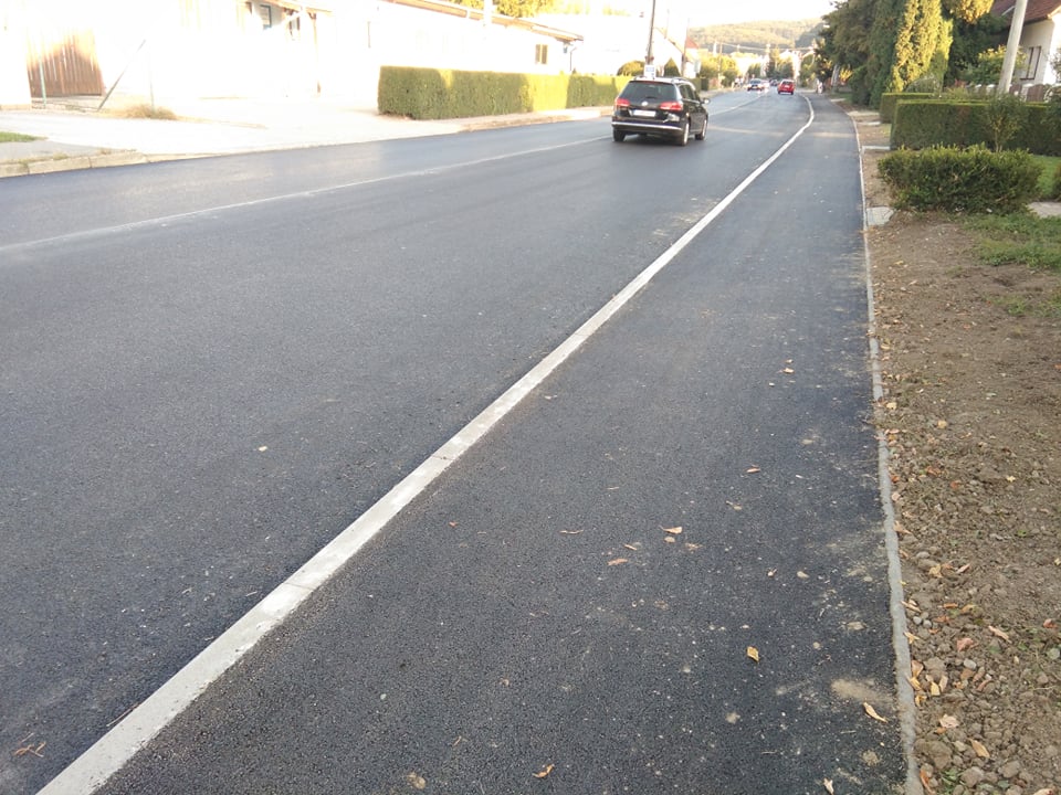 Nový asfaltový povrch vozovky (pred dokončením chodníka)