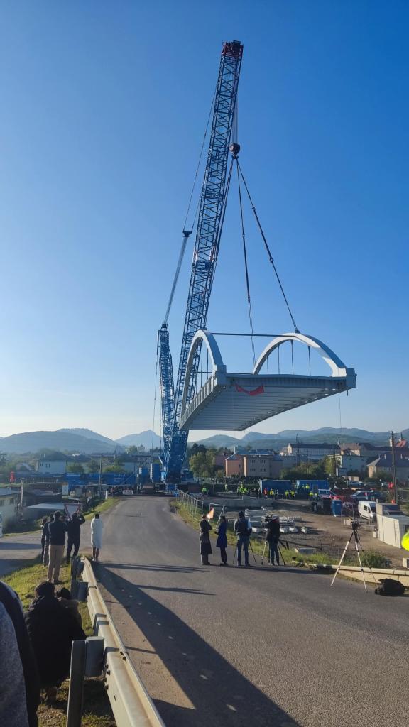 Nová oceľová mostná konštrukcia s hmotnosťou 132 ton zaplnila prázdne miesto medzi brehmi kanálu 26. apríla 2024. Zdvihol ju žeriav s ramenom vysunutým do výšky 72 metrov. Ďalších asi 18 ton železobetónu bolo primontovaných na hlavnú konštrukciu oceľového mosta. Nasledovalo betónovanie železobetónovej mostovky, pribudli železobetónové prefabrikáty, zvodidlá, zábradlia a nakoniec niveleta do prístupových ciest. Oproti pôvodnému mostu sa rozšíril. Z jednej strany ho lemuje dvojmetrový chodník pre peších a z druhej chodník široký 2,75 metra pre cyklistov.