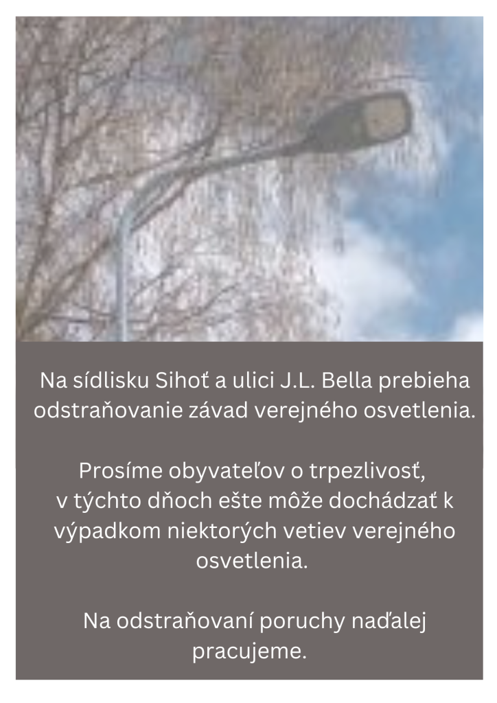 Prosíme obyvateľov o trpezlivosť, v týchto dňoch ešte môže dochádzať k výpadkom niektorých vetiev verejného osvetlenia.