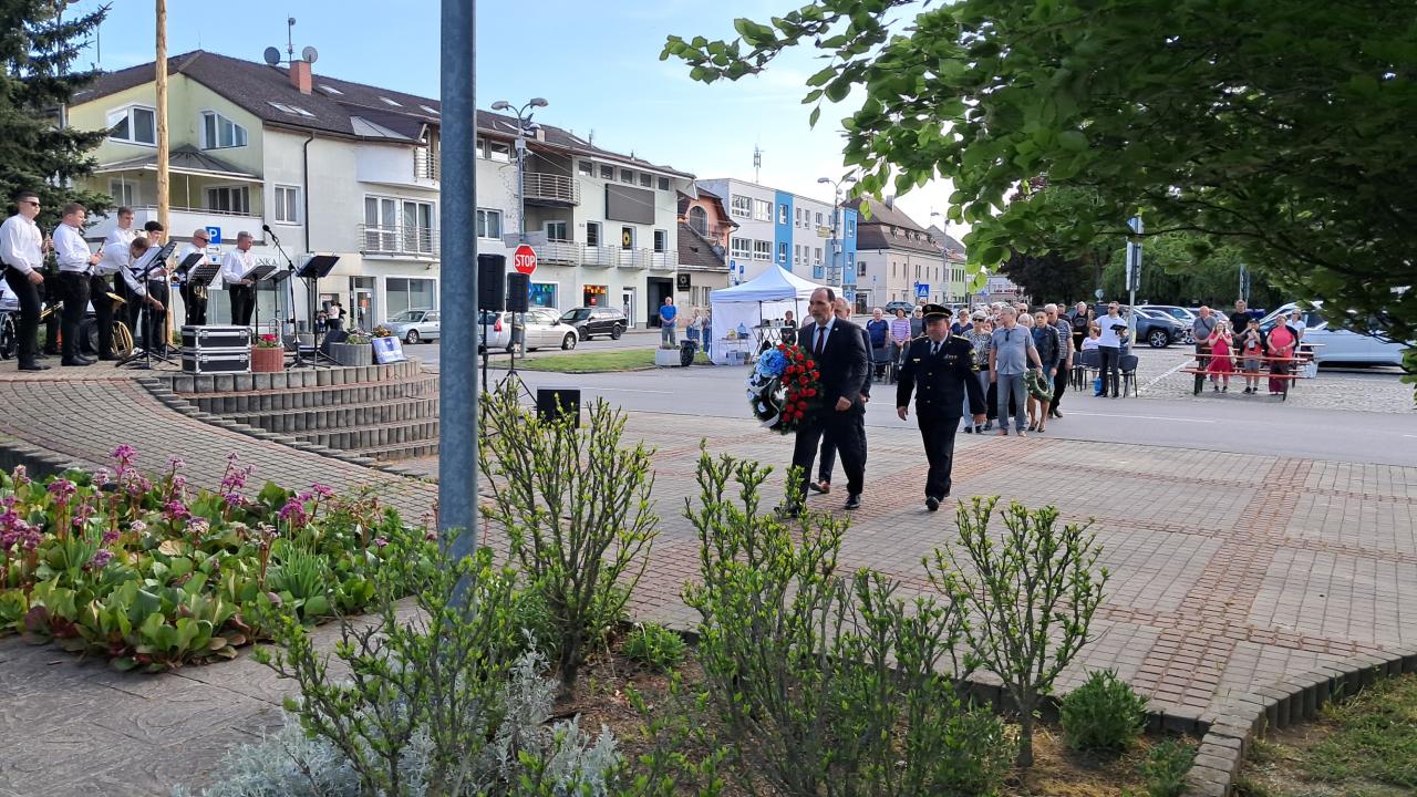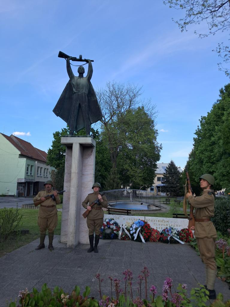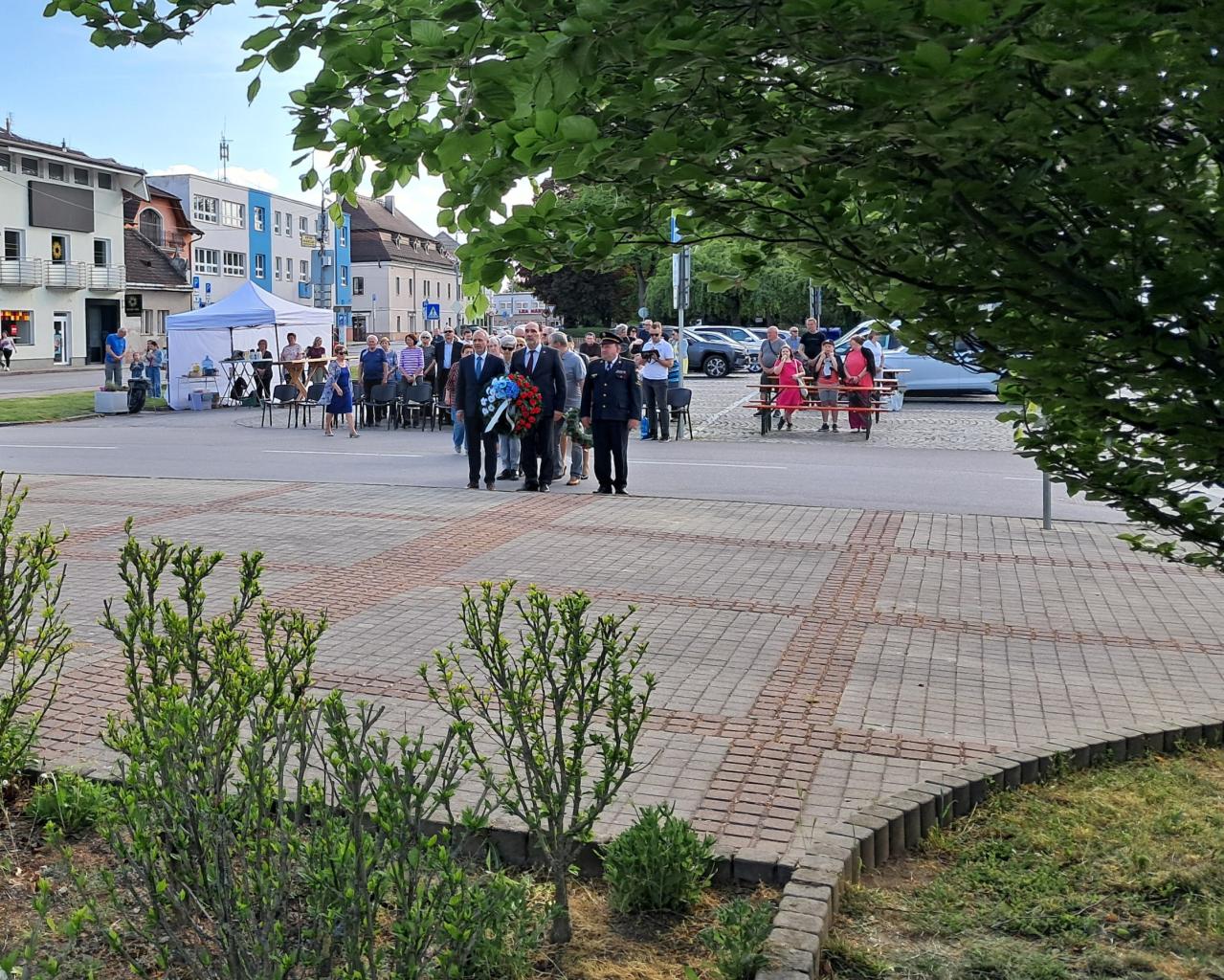 Zúčastneným sa následne prihovoril primátor Ilavy Viktor Wiedermann. Vo svojom príhovore pripomenul udalosti z apríla 1945. Na znak úcty a ako vyjadrenie vďaky našim osloboditeľom potom symbolicky vedenie mesta, poslanci a členky únie žien položili vence k pamätníku. Sprevádzali ich slávnostné salvy v podaní členov Čestnej stráže z Klubu vojenskej histórie Trnavská posádka. O hudobný doprovod sa počas celého podujatia postarala dychová hudba Predmierčanka.