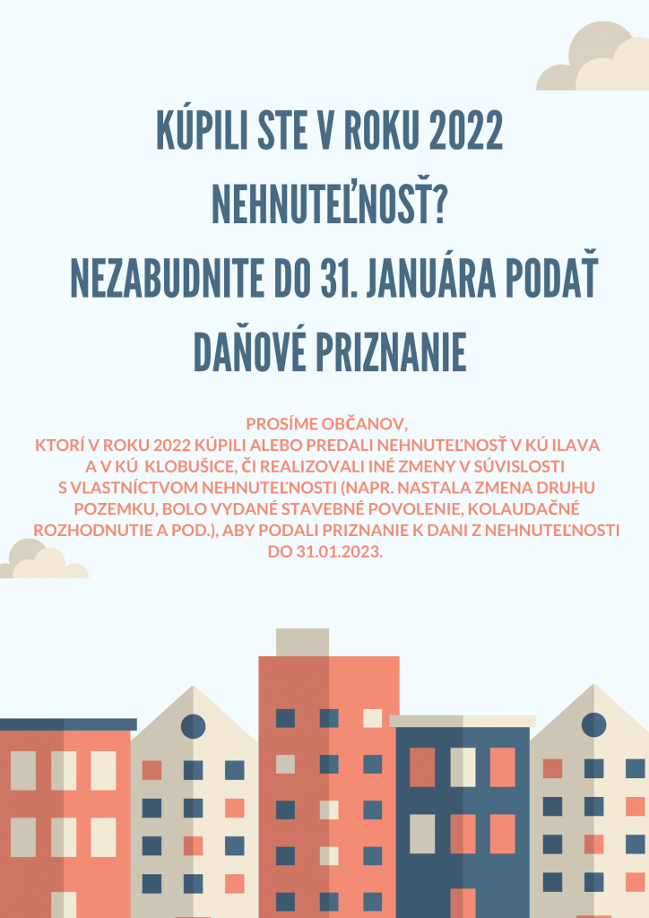 K podaniu daňového priznania k dani z nehnuteľností by ste mali vedieť, že predmetom dane sú: