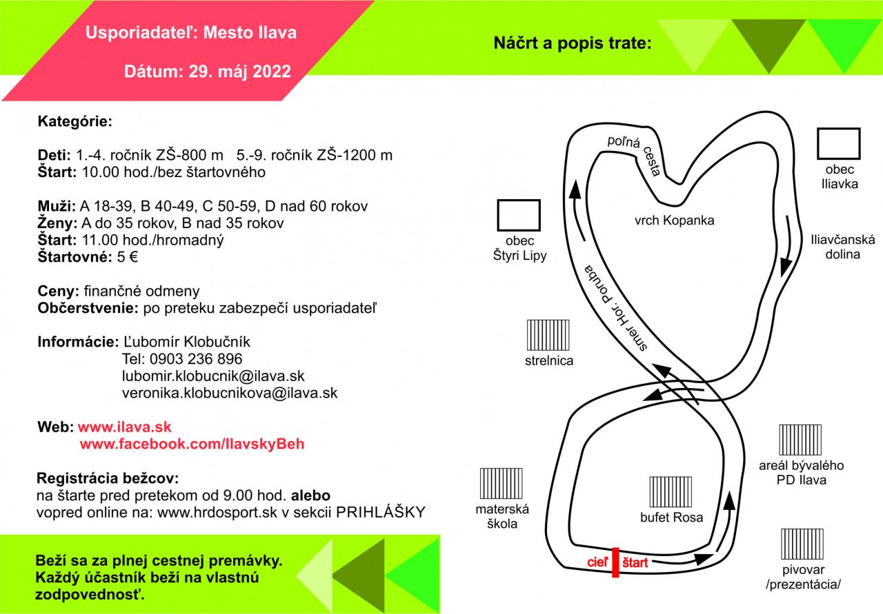 Podujatie sa aj tohto roku predstaví pod organizačnou taktovkou Mesta Ilava a stabilného generálneho partnera - spoločnosti AGROMIX. Vypísaných je celkom 10 vekových kategórii - 4 mužské (M, M40, M50, M60), 2 ženské (Ž, Ž35) a 4 žiacke (chlapci a dievčatá 1.- 4. ročníkov ZŠ a 5.- 9. ročníkov ZŠ). Bežecké súboje najmladších pretekárov začínajú tradične o desiatej hodine v priestoroch štartu a cieľa pred starým mestským pivovarom.