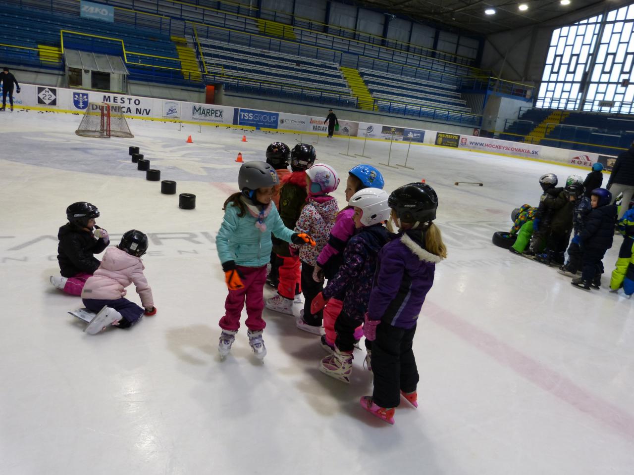 V Dubnici nad Váhom sú korčuliarske kurzy rutinou, nakoľko sú neoddeliteľnou súčasťou hokejového oddielu. „Bez malých detí to nejde. Robí sa to, odkedy je hokej hokejom. Ale samozrejme kurzy stále inovujeme a organizujeme v novších formách. Chceme deti dostať na ľad, upútať ich, aby nesedeli iba doma, ale vytiahli rodičov na nejaké športovisko,“ vysvetlil Róbert Gálik, jeden z trénerov MHK Dubnica. Korčuliarsky kurz pre najmenších má svoju postupnosť. Prichádzajú naň totiž deti, ktoré nikdy nemali obuté korčule. „V prvom rade ich oboznámime s tým, čo majú na nohách. Keď sa dostanú do korčúľ, sú veľmi šťastné, lebo je to pre nich niečo nové. Skúšame kráčať po gume a okolo mantinelu. Keď už vedia stáť, malými krokmi ideme na ľad. Niektorí udržia rovnováhu hneď, niektoré chodia po štyroch, pomaly sa postavia... Za ten týždeň sa naučia korčuľovať všetky deti,“ opísal prvé dni na ľade tréner. „Máme to prepracované tak, že každý jeden pohyb sa snažíme prirovnať k nejakému zvieratku. Keď im povieme, že ideme robiť tučniačika, deti vedia, že ten robí maličké kroky, má nožičky pri sebe a drobčí. Keď ideme robiť medveďa, prídu na rad veľké kroky. Žabka zase skáče... Každý pohyb sa im snažíme dostať do ich detskej hlavičky cez zoo,“ vtiahol nás do detského sveta, ktorým sa musia riadiť aj samotní tréneri, Róbert Gálik.