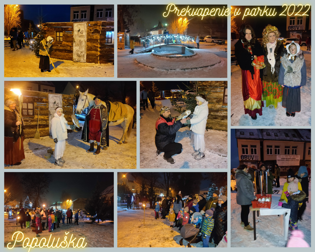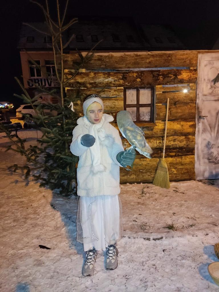 V malom parku síce deti videli v podaní hercov z divadelného súboru Masky len kúsok z nej, ale za to sa mohli odfotiť s nádhernou sovou a povoziť sa na krásnom bielom koníkovi. V malom parku nechýbali ani ďalšie menšie fotogenické kulisy, medzi nimi aj nadrozmerné sane, ktoré boli do Knihy slovenských rekordov zapísané minulý rok. Malým snehuliakom padol vhod aj detský punč, ktorí dobrovoľníci zdarma rozdávali.