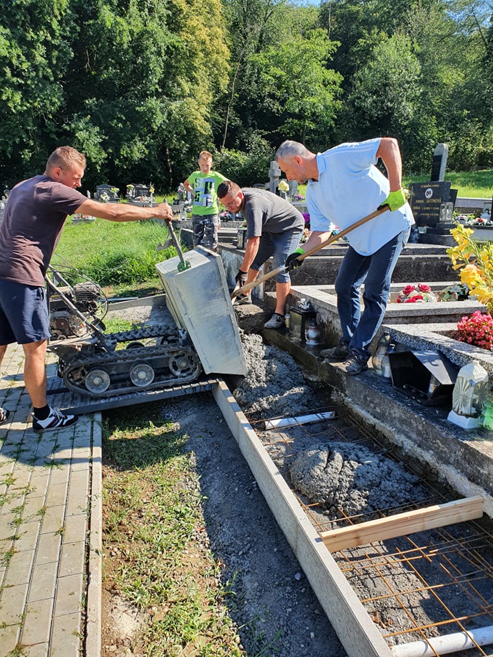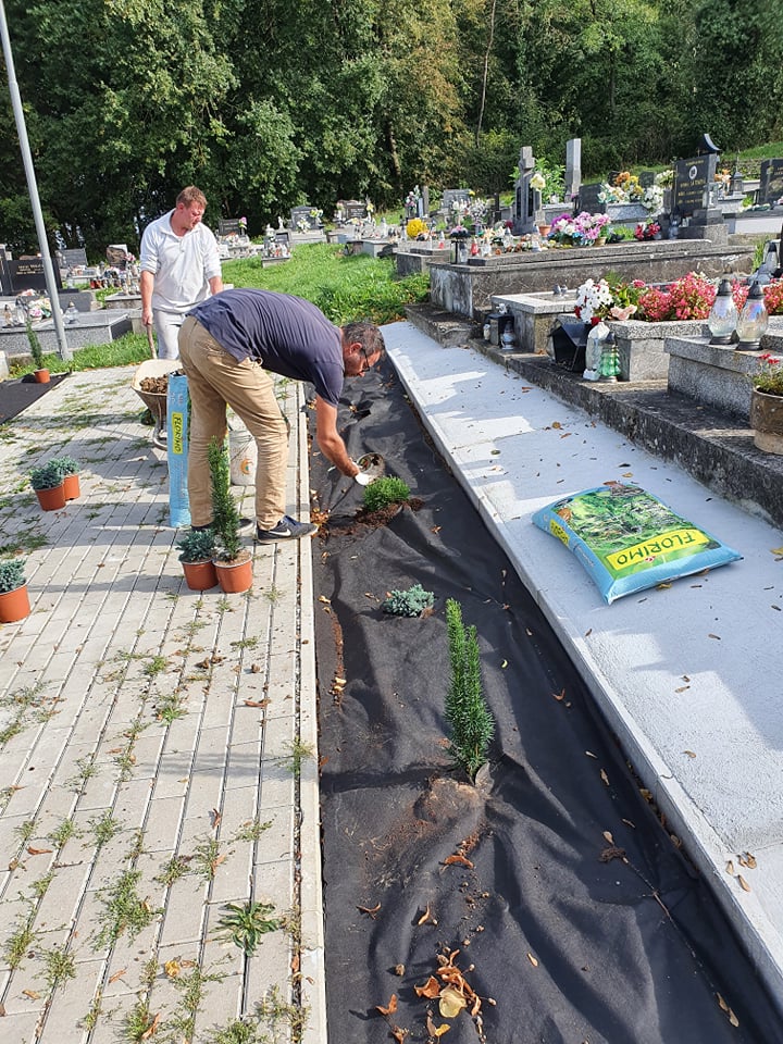Spoločnými silami najskôr vyčistili okolie všetkých chodníkov od starých koreňov tují, osadili obrudníky, betónovali a okolie chodníkov vysypali ozdobnými kameňmi. Na rad prišlo aj skrášlenie okolia hrobov prostredníctvom výsadby. V druhej etape sa popasovali aj s náročnejšími úlohami. Pustili sa do opráv oplotenia, vytiahli zo zeme staré korene spílených stromov a opäť naviezli na vyčistené cestičky medzi hrobovými miestami ozdobný štrk. Návštevníkov cintorína iste poteší aj pohľad na novú výsadbu kvetov.
