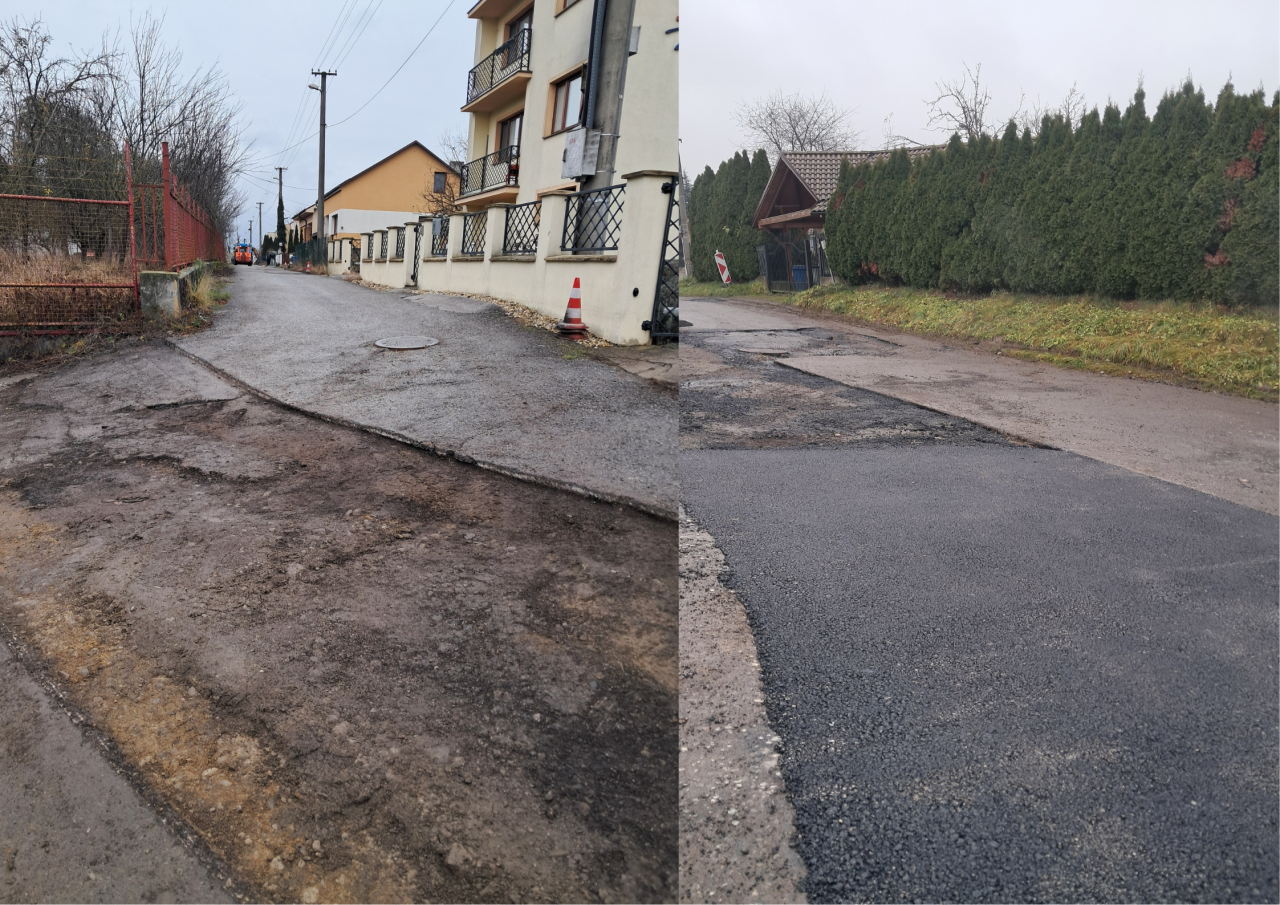 Záhumenskej ulice. Doplnil sa asfalt v ucelenom úseku, kde končila vozovka a pred rodinnými domami bolo iba blato. Rovnako tak sa v tejto lokalite vyspravilo niekoľko výtlkov. Asfaltová výplň sa ušla i dieram pri parkovisku a na Kukučínovej ulici a pri výjazde na hlavnú cestu.