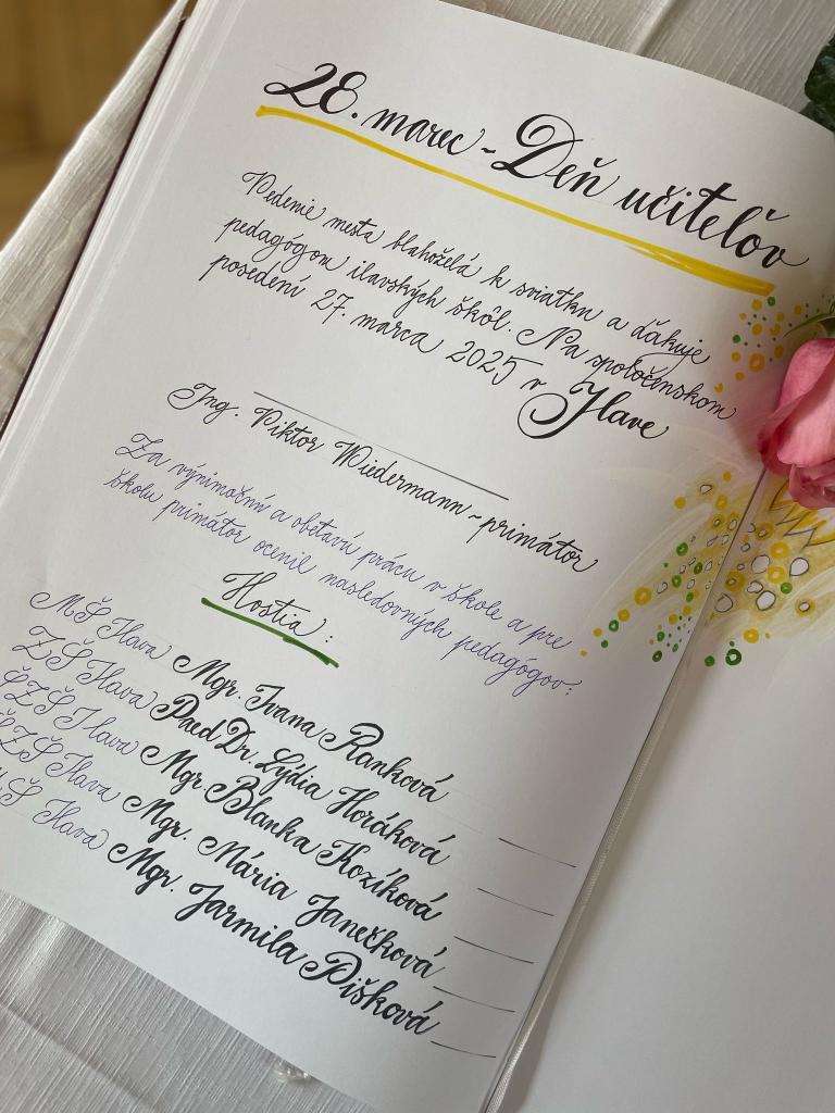 Oslávili sme najmä ich prácu, odhodlanie, výzvy, ktorými dennodenne prechádzajú, ich neustále vzdelávanie, trpezlivosť a lásku k svojmu poslaniu. ,,Dovoľte mi, aby som vám takto spoločne všetkým zablahoželal k vášmu dnešnému sviatku. Ako tu už odznelo, byť učiteľom nie je len povolaním, ale hlavne poslaním. Iba dobrí učitelia vedia vo svojich žiakoch zapáliť plamienok túžby po poznaní a ako svojich žiakov motivovať a viesť ich k tomu, aby sa nikdy neprestali vzdelávať. Ďakujem vám za vašu zodpovednú prácu i za výsledky, ktoré žiaci vďaka vášmu vedeniu dosahujú. Mnohí z nich reprezentujú naše mesto v rámci Slovenska, Európy i sveta. Vždy ma veľmi teší, keď sa dozviem o ďalšej úspešnej olympiáde, na ktorej žiaci z ilavskej školy excelovali. Som na vás hrdý vždy, keď otvárate nové a nové projekty, ktoré deťom spríjemňujú nielen vzdelávací proces, ale aj voľný čas, v ktorom môžu byť tvoriví, aktívni a prospešní pre spoločnosť. Od vás, milí pedagógovia závisí vzdelanosť, ale aj výchova ďalších generácií. Prajem vám veľa zdravia, úspechov a radosti zo svojho poslania," v mene Mesta Ilava i v mene svojom zablahoželal všetkým pedagógom primátor mesta Ilava Viktor Wiedermanna a súčasne niektorých z prítomných i menovite ocenil. ,,Som rád, že dnes môžem oceniť pani učiteľky, ktoré sú a budú pre svojich žiakov inšpiráciou. Za ich zodpovednú prácu všetkým pani učiteľkám a pánom učiteľom v mene rodičov a aj žiakov veľmi pekne ďakujem."