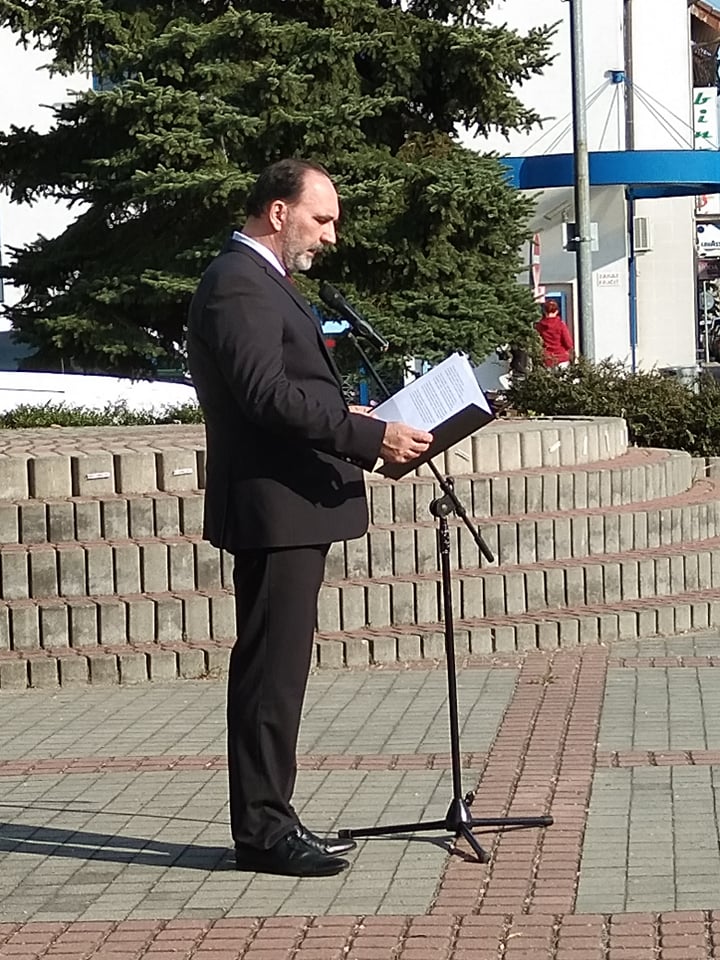 Po tom, čo zaznela hymna Slovenskej republiky, si prítomná verejnosť mohla vypočuť príhovor primátora mesta Viktora Wiedermanna, v ktorom okrem iného zaznelo: