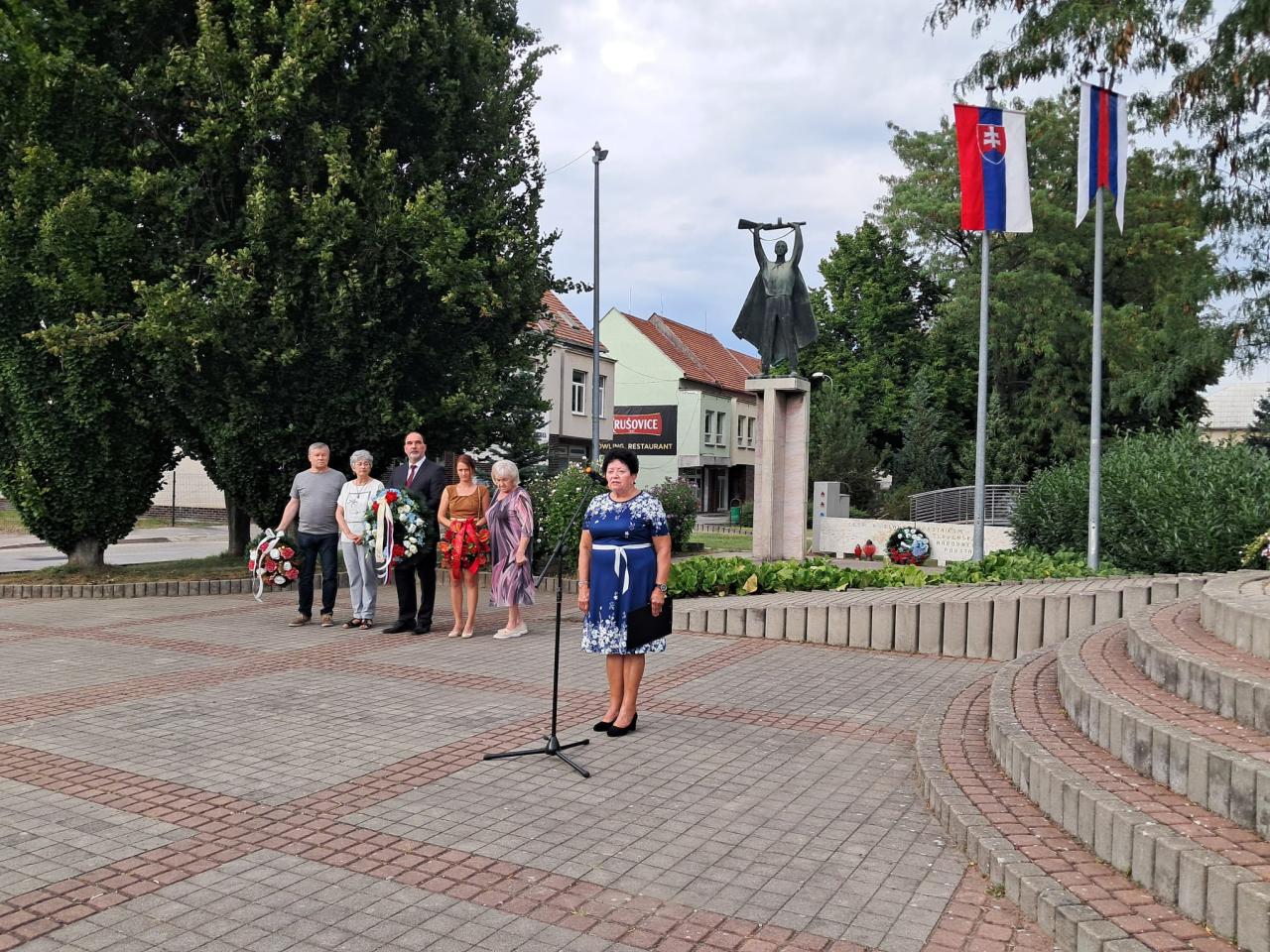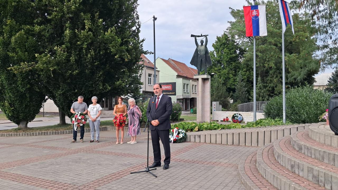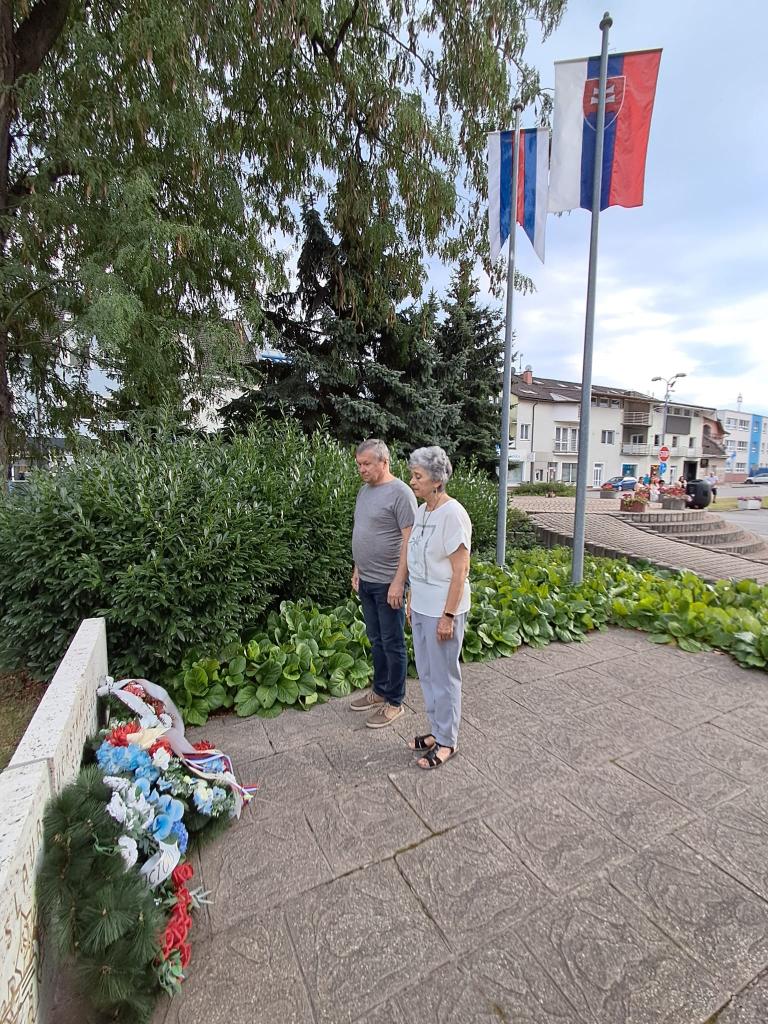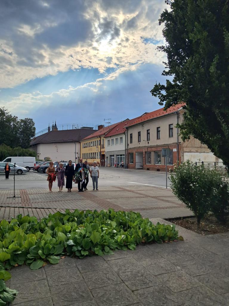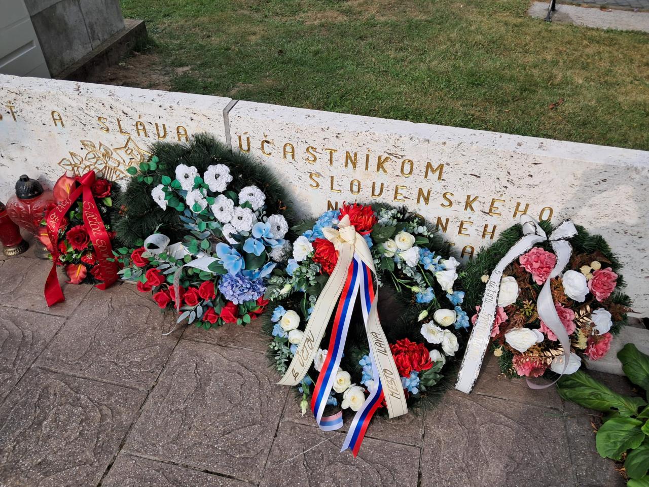 Pri Pamätníku partizána na námestí sa stretli predstavitelia mesta, poslanci mestského zastupiteľstva, členky únie žien i občania, aby vzdali úctu hrdinom a obetiam povstania z roku 1944.
