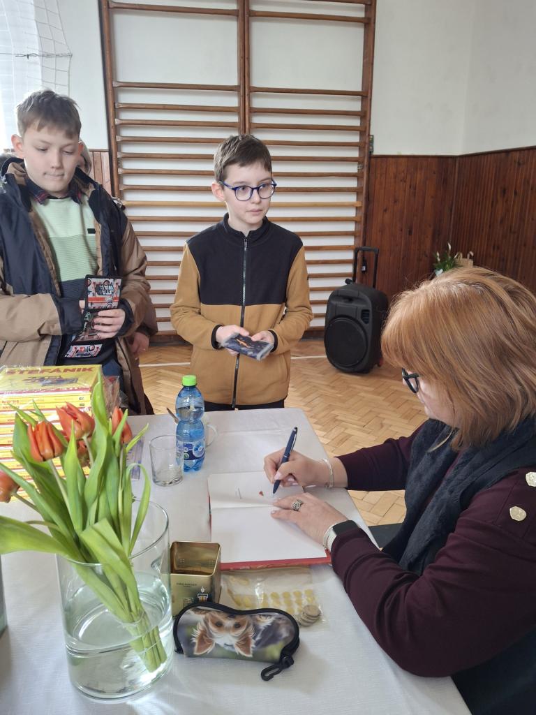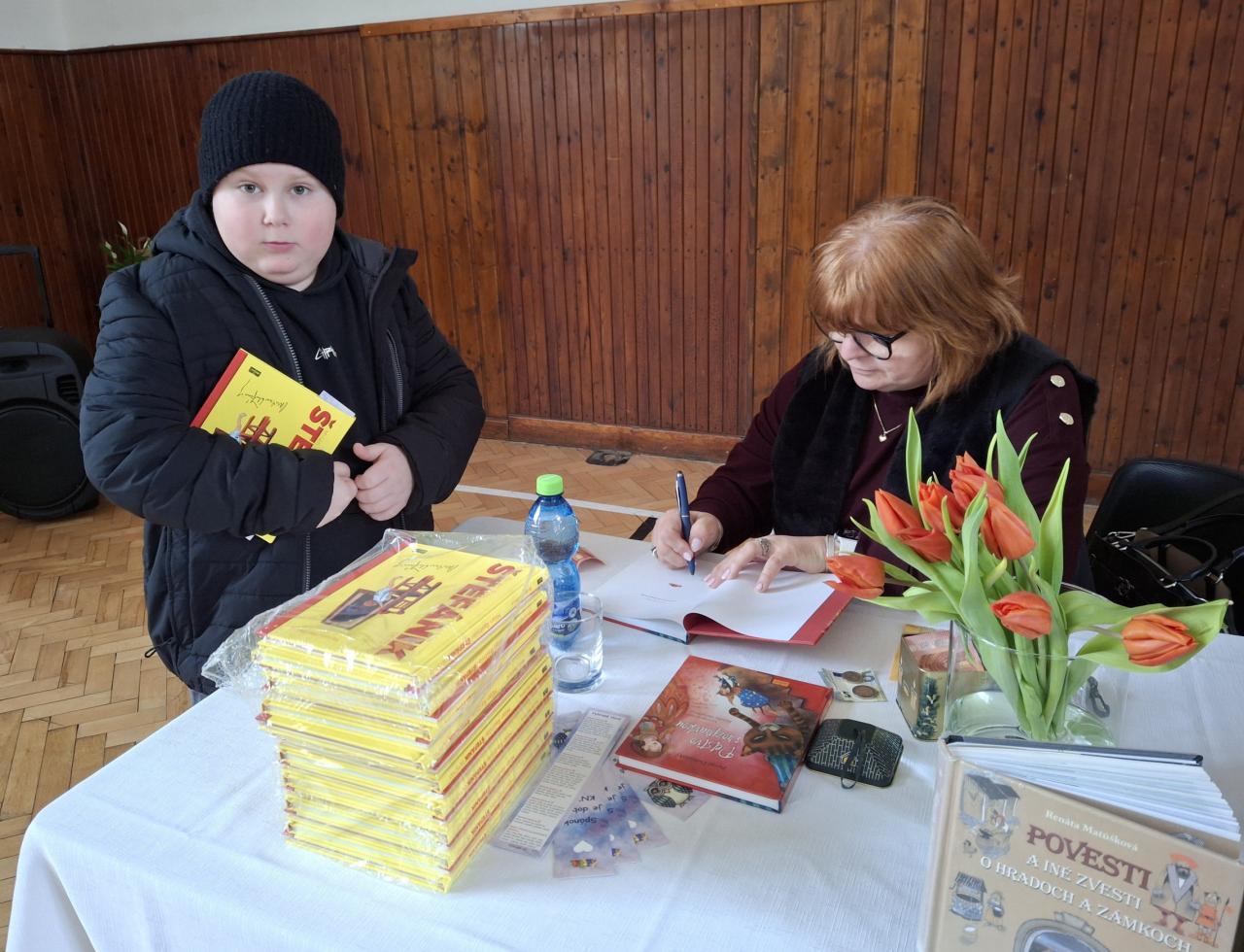 Beseda sa kvôli rekonštrukcii domu kultúry uskutočnila v telocvični bývalej školy, kde je teraz aj knižnica. V ostatných rokoch autorka píše aj knihy o detstve významných osobností. Predstavila piatakom svoje knihy o detstve Pavla Dobšinského a Milana Rastislava Štefánika, porozprávala ako vlastne vznikli, kde získavala informácie o ich rodinnom zázemí, prečítala ukážku o tom, ako sa Štefánik narodil a porozprávala zaujímavosti o výstavbe mohyly na Bradle, kde je pochovaný.