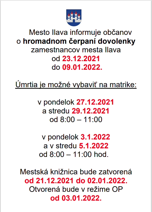 Obedňajšia prestávka je od 11:00 do 12:00 hod.