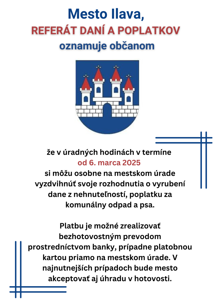 Obedňajšia prestávka je od 11:00 do 12:00 hod.