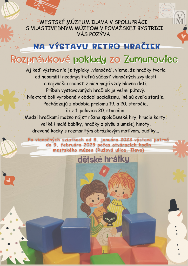 Aj keď výstava Rozprávkové poklady zo Zamaroviec nie je typicky „vianočná“, vieme, že hračky tvoria od nepamäti neodmysliteľnú súčasť vianočných zvyklostí a najväčšiu radosť z nich majú vždy hlavne deti. Príbeh vystavovaných hračiek je veľmi pútavý.