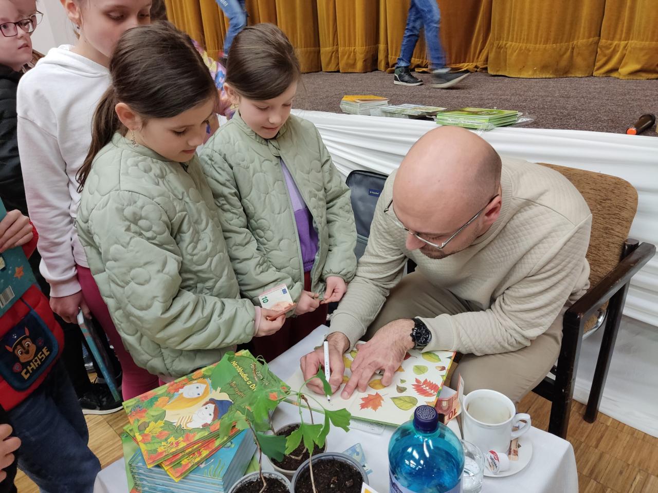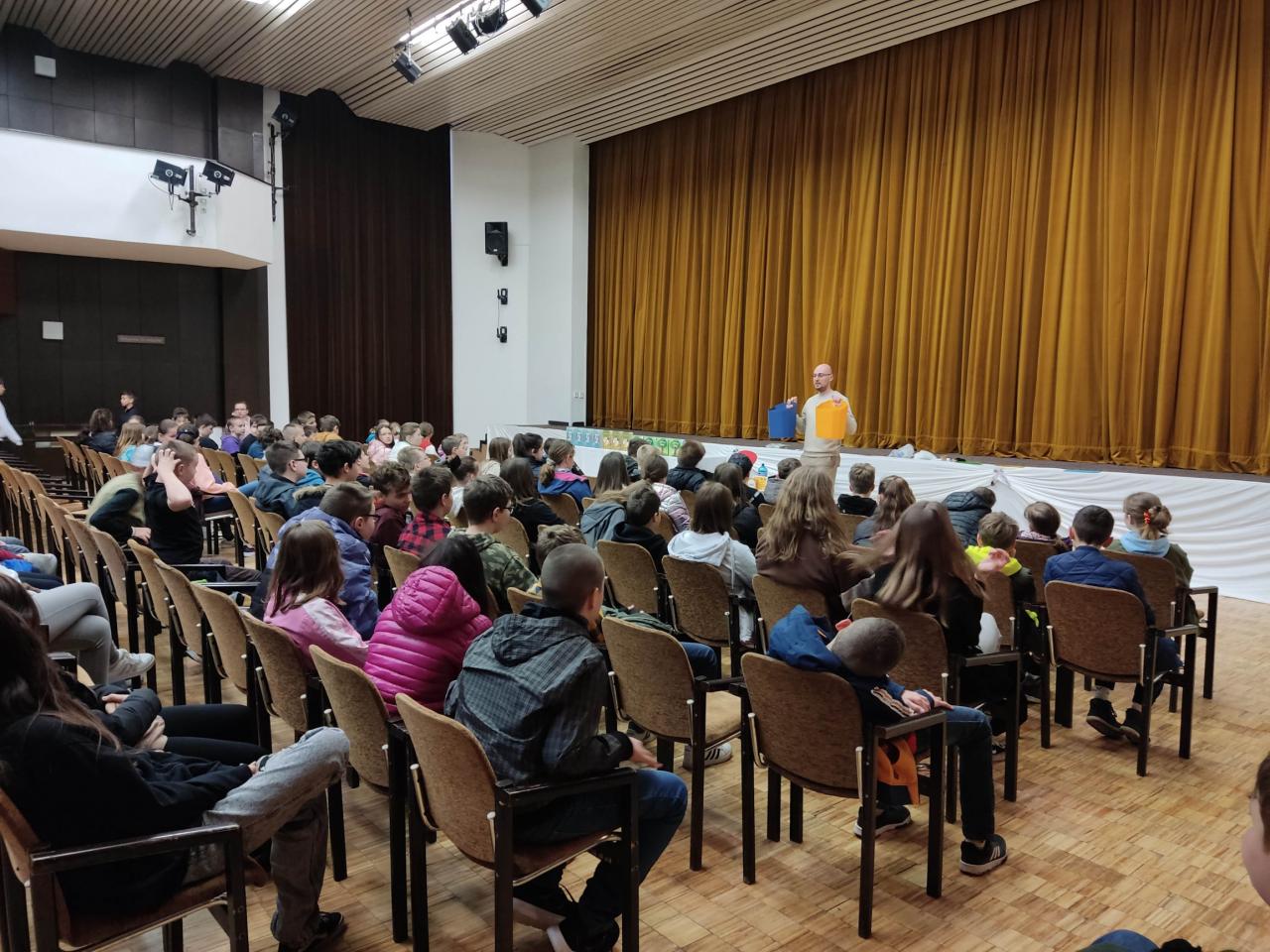 Predstavil im nielen seba a svoju autorskú cestu k napísaniu kníh, ale aj samotné knižné diela. Nechýbala ukážka, ktorej téma patrila práve separácii odpadu. A aby bola väčšia zábava, deti nielen slovne určili, do ktorého kontajnera jednotlivé druhy odpadu patria, ale jedno veľké vrece smetí spoločne roztriedili. Lákadlom pre nich bol aj vermikompostér, o ktorom sa dozvedeli, že môže byť aj v bytoch. Žijú v ňom dážďovky, konzumujú zvyšky odpadu a pomáhajú tvoriť kompost.