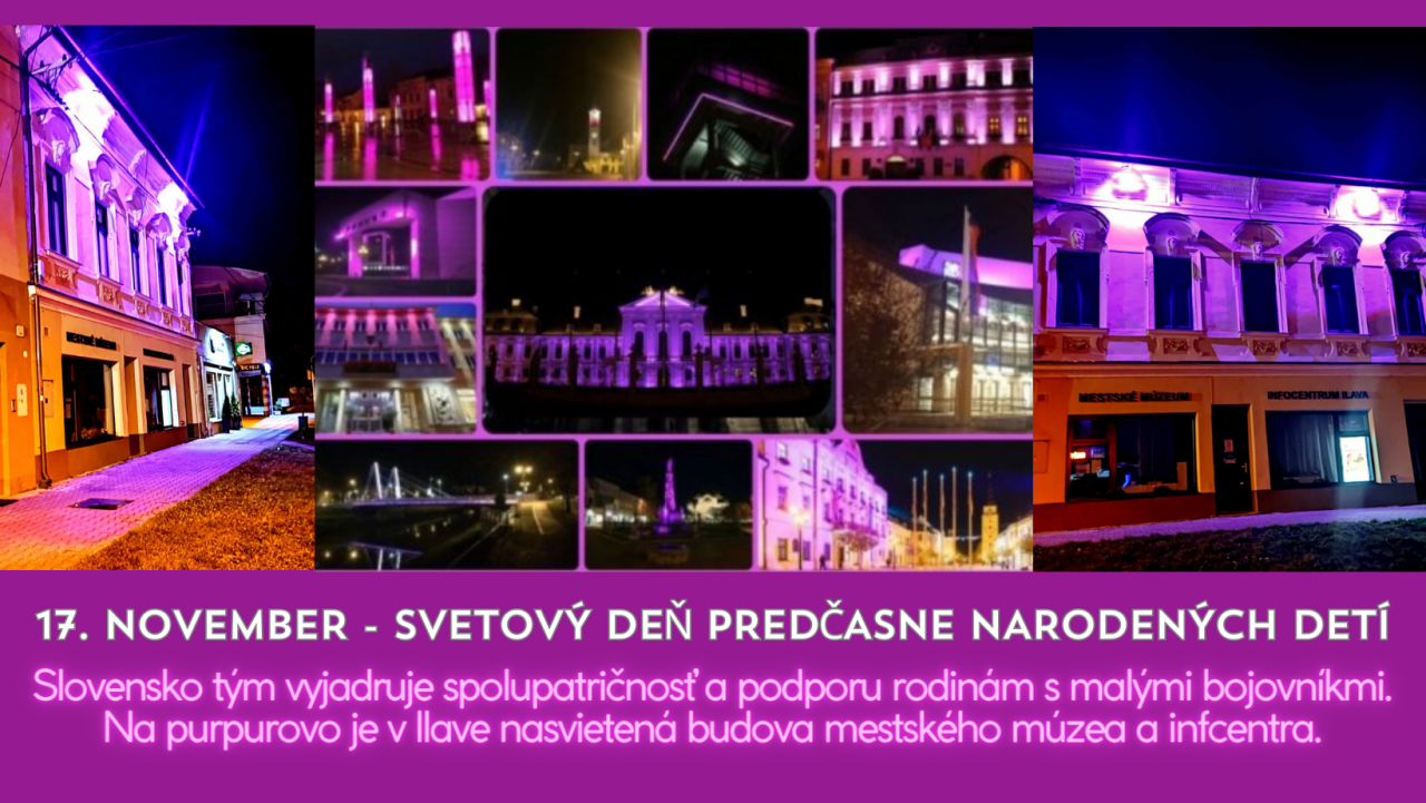 Na Slovensku je už tradíciou, že november nie je len mesiacom významných historických udalostí, ale jeho stred patrí úplne najmenším a najkrehkejším – predčasne narodeným deťom. Je celosvetovou tradíciou, že sa pri príležitosti Svetového dňa predčasne narodených detí dominanty v rôznych kútoch sveta zahaľujú do purpurovej farby a rozsvecujú farbou predčasniatok. Výnimkou nie je ani tento rok. Súčasťou tohtoročných novembrových akcií je aj tradičné purpurové nasvecovanie slovenských dominánt, počet samospráv a ich dominánt je doteraz najvyšší. Spoluprácu pri nasvecovaní tento rok zastrešilo Združenie miest a obcí Slovenska (ZMOS).