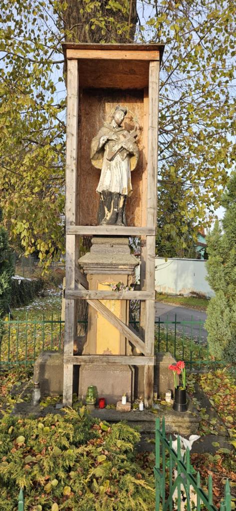 Hoci socha nepatrí do oficiálneho zoznamu kultúrnych pamiatok, vyobrazuje svätca Jána Nepomuckého, ktorý zomrel mučeníckou smrťou. Bol generálnym vikárom pražskej arcidiecézy, mučeník, jeden z patrónov českej zeme. Narodil sa medzi rokmi 1340 - 1350 v Pomuku (dnes Nepomuk), zomrel 20. marca 1393 v Prahe.