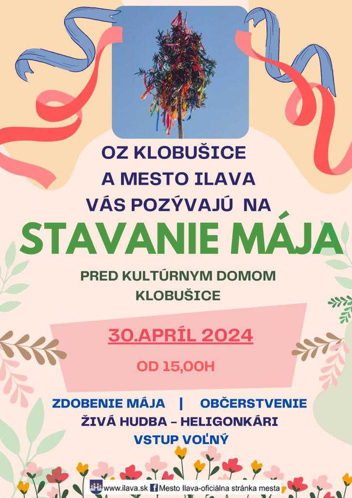 Deti môžu prísť pomôcť ozdobiť máj od 15,00 hod. Stuhy sú prichystané, ale kto chce, môže si doniesť aj svoju.