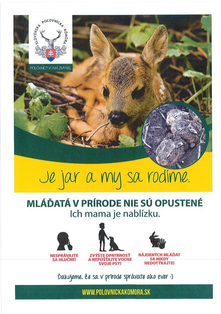 Práve v tomto období do prírody mieri väčšie množstvo ľudí nielen kvôli prebúdzajúcej sa prírode po zime, ale i obmedzeniu iných možností. Lenže práve teraz sa rodia mláďatá a preto prosíme: nájdených mláďat sa nikdy nedotýkajte! Ich rodičia sa k nim určite vrátia. Nepúšťajte voľne behať svoje psy! Nesprávajte sa hlučne! V prírode sa treba správať ako zver :)