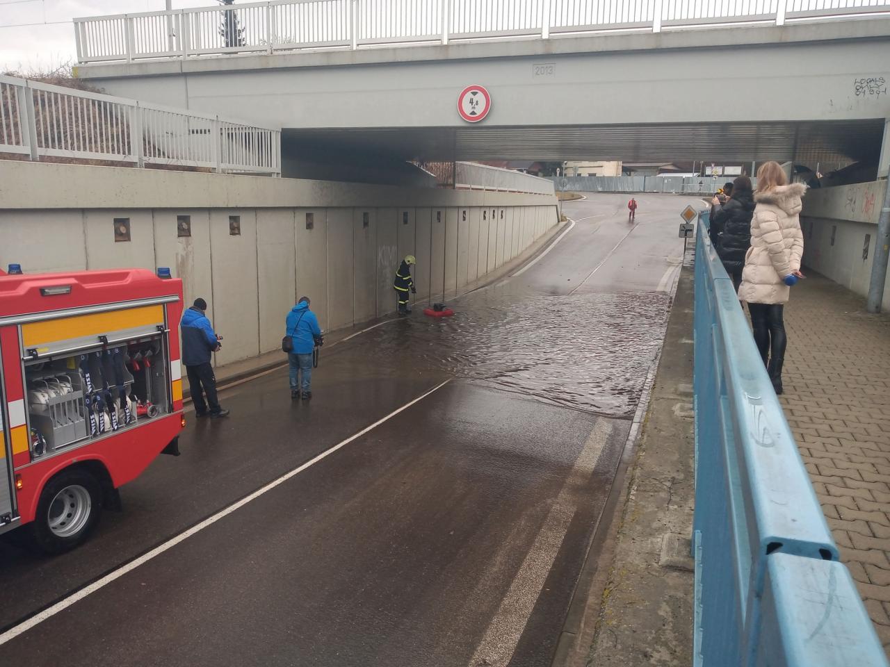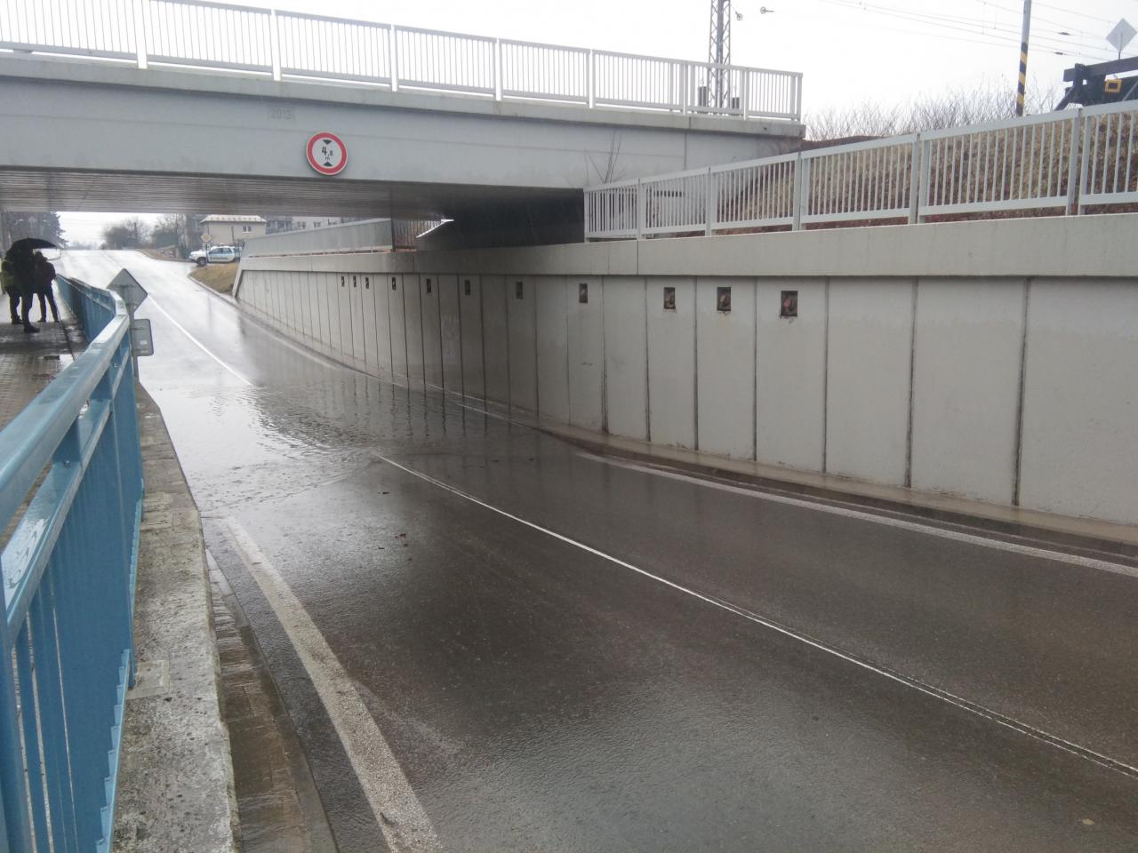 Oznamujeme obyvateľom, že dnes, dňa 21.2.2022, opätovne v dôsledku dažďa a pretrvávajúcej technickej poruchy na čerpadlách v podjazde pod železničným mostom došlo cca o 9:15 hod. k zatopeniu podjazdu.