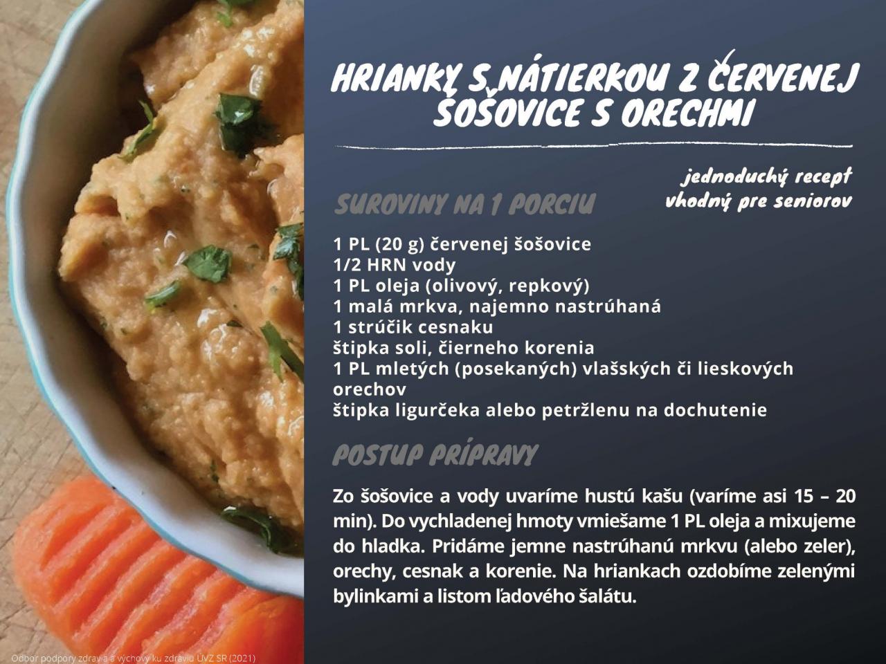11. pestrá strava obohatená o ovocie a zeleninu - v čerstvom, varenom, mrazenom, sušenom či konzervovanom stave, aj v podobe koktailov, štiav, pyré (uprednostňovať sezónne druhy); v rámci zeleniny nezabúdať na strukoviny (fazuľa, šošovica, cícer a i.)