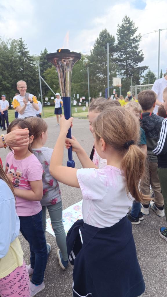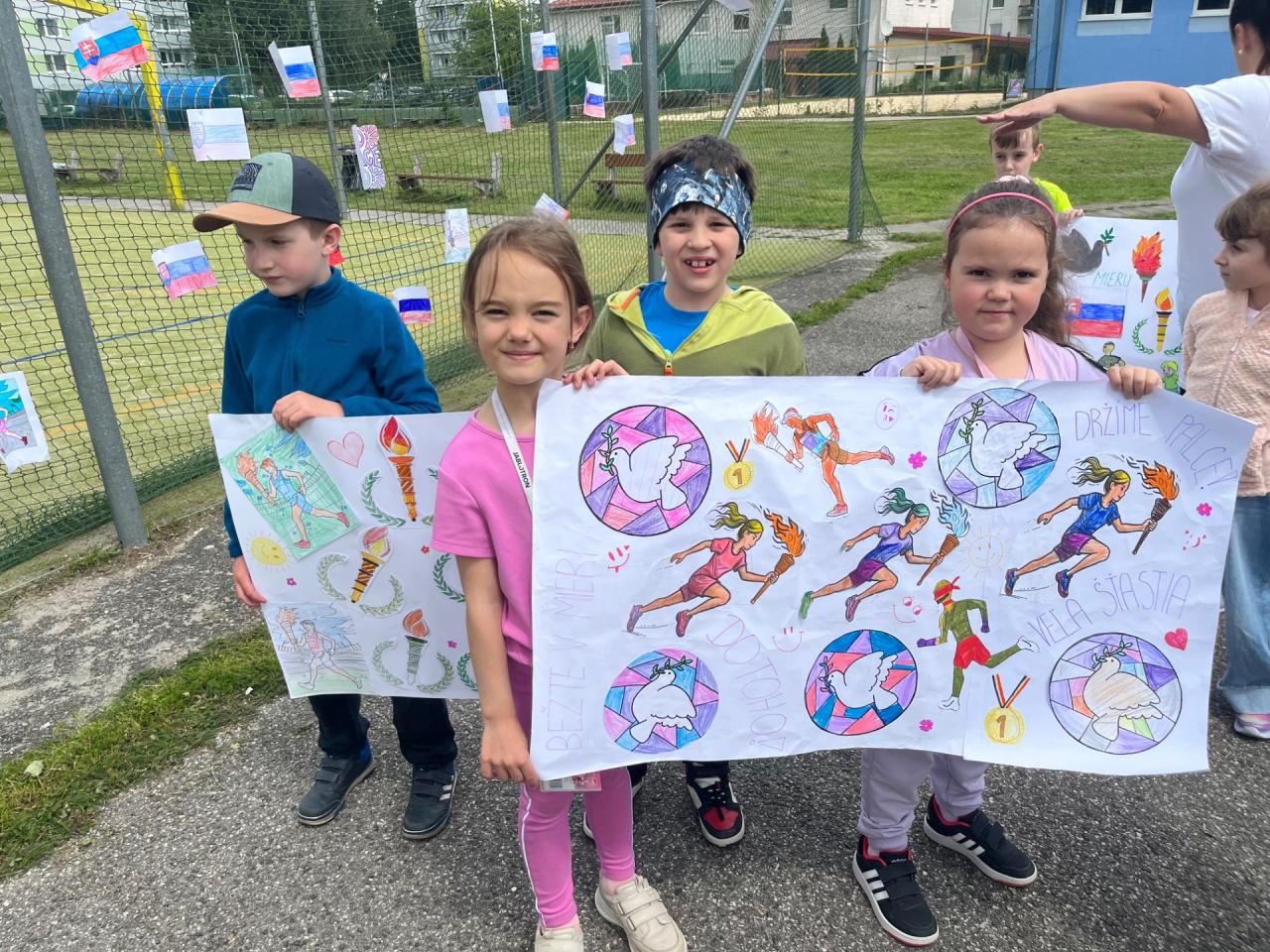 Deti vítali bežcov z rôznych krajin už pred bránami školy s krásnymi plagátmi. Ako prvé mali tú česť niesť pochodeň deti z atletického krúžku. K štafete sa mohol pripojiť každý. Pochodeň podržal každý jeden žiak, vložil do nej svoje prianie, ktoré potom putovalo ďalej do celého sveta.
