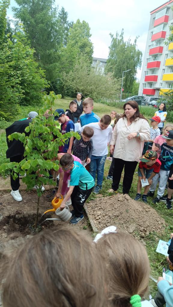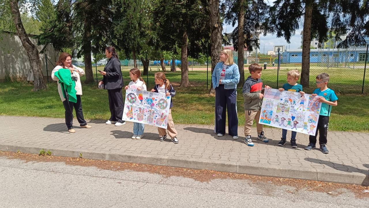 Na školskom dvore bol pre deti pripravený program. Bežci formou hier a súťaží ukázali deťom, ako môžu ľudia z rôznych krajín spolupracovať, bežať a žiť v mieri. Žiaci zaspievali bežcom pieseň a šikovní karatisti predviedli svoje zručnosti. Nakoniec, spoločne s pani riaditeľkou, všetci zúčastnení zasadili strom, ako symbol mieru.